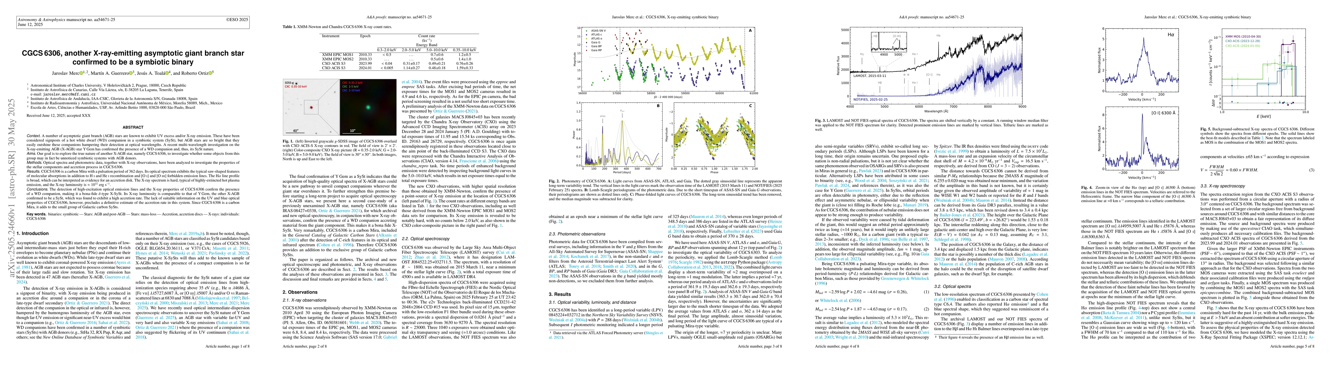 The research confirms CGCS 6306 as a symbiotic binary with a hot white dwarf companion, identified through optical spectra, photometric data, and X-ray observations. This adds to the small group of Galactic carbon symbiotic systems, similar to the previously confirmed X-ray emitting AGB star Y Gem.