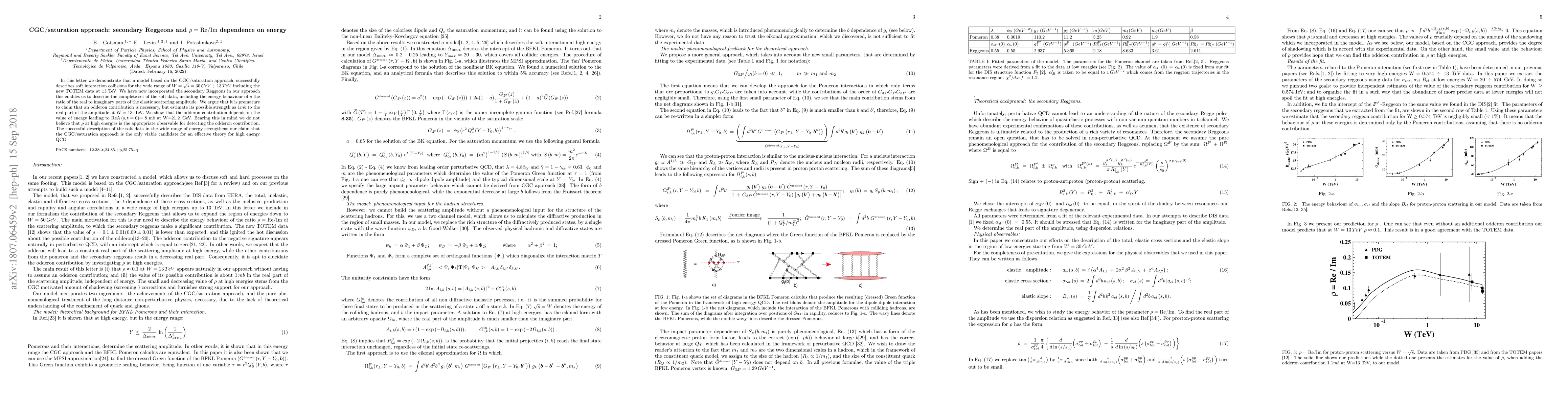 In this letter we demonstrate that a model which is based on the CGC/saturation approach, is able to describe soft interaction collisions for the wide range of $W=\sqrt{s} = 30 \,GeV \div\, 13 \,TeV$ including the new TOTEM data at 13 TeV. We have incorporated the secondary Reggeons in our approach which enables us to describe the complete set of the soft data, including the energy behaviour of $\rho $ the ratio of the real to imaginary parts of the elastic scattering amplitude. We argue that it is premature to claim that an odderon contribution is necessary, but estimate its possible strength as $1 mb$ to the real part of the amplitude at W = 13 \,TeV. We show that the odderon contribution depends on the value of energy leading to ${\rm Re A\Lb s, t=0\Rb} $= 8 mb at W=21.2 \,GeV. Bearing this in mind we do not believe that $\rho$ at high energies is the appropriate observable for detecting the odderon contribution. The successful description of the soft data in the wide range of energy strengthens our claim that the CGC/saturation approach is the only viable candidate for an effective theory for high energy QCD.