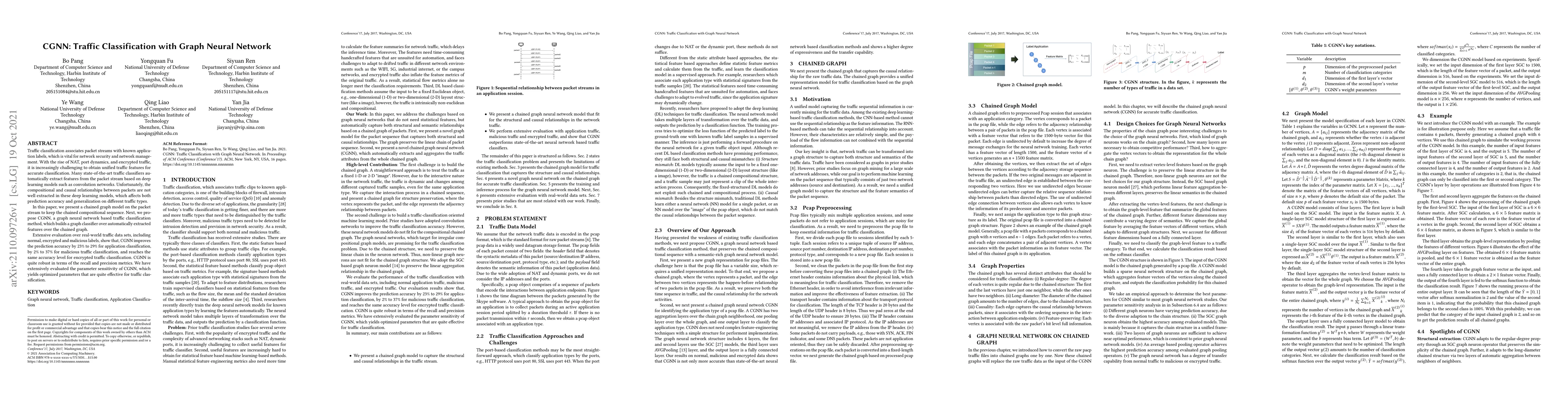 This paper presents CGNN, a graph neural network for traffic classification that leverages a chained graph model to better capture the compositional and causal relationships between packets. CGNN significantly improves classification accuracy for normal, encrypted, and malicious traffic, demonstrating robustness and optimized parameter sensitivity.