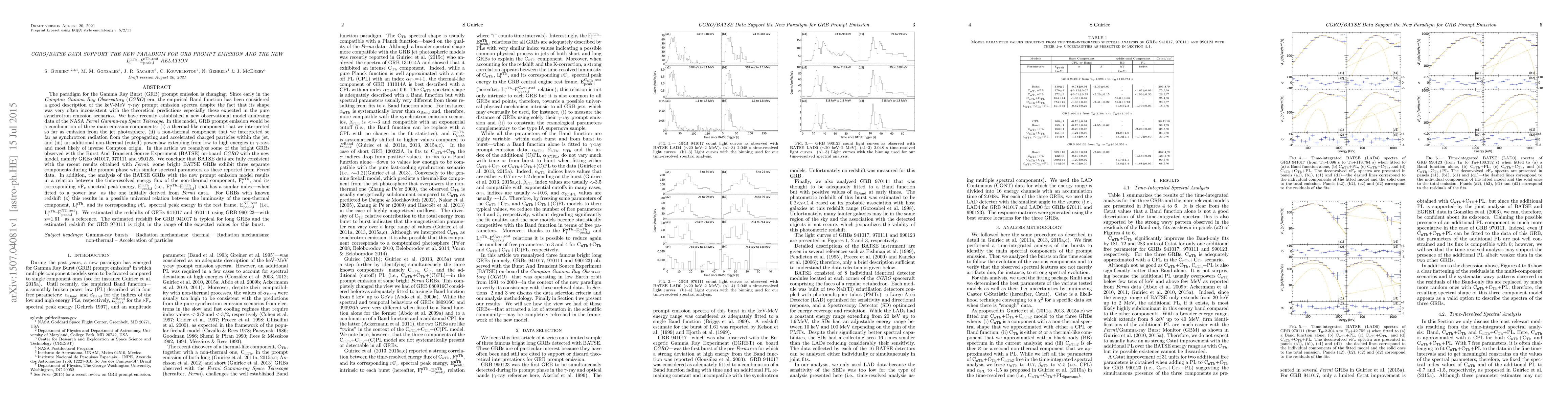 Bright GRBs observed with CGRO/BATSE show consistency with a new model of prompt emission, including a thermal-like component, non-thermal radiation, and inverse Compton scattering, leading to a universal relation between the luminosity of the non-thermal component and its peak energy.
