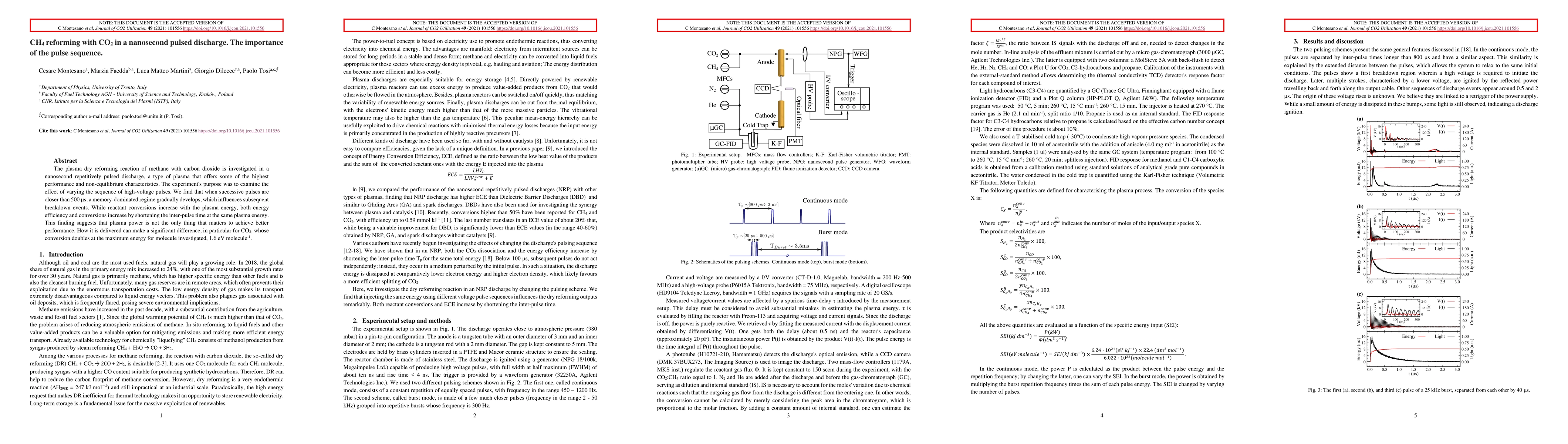 This study investigates methane reforming with carbon dioxide using nanosecond pulsed discharge, finding that a memory-dominated regime develops when pulses are closer than 500 μs. This regime enhances reactant conversion and energy efficiency in the plasma discharge.