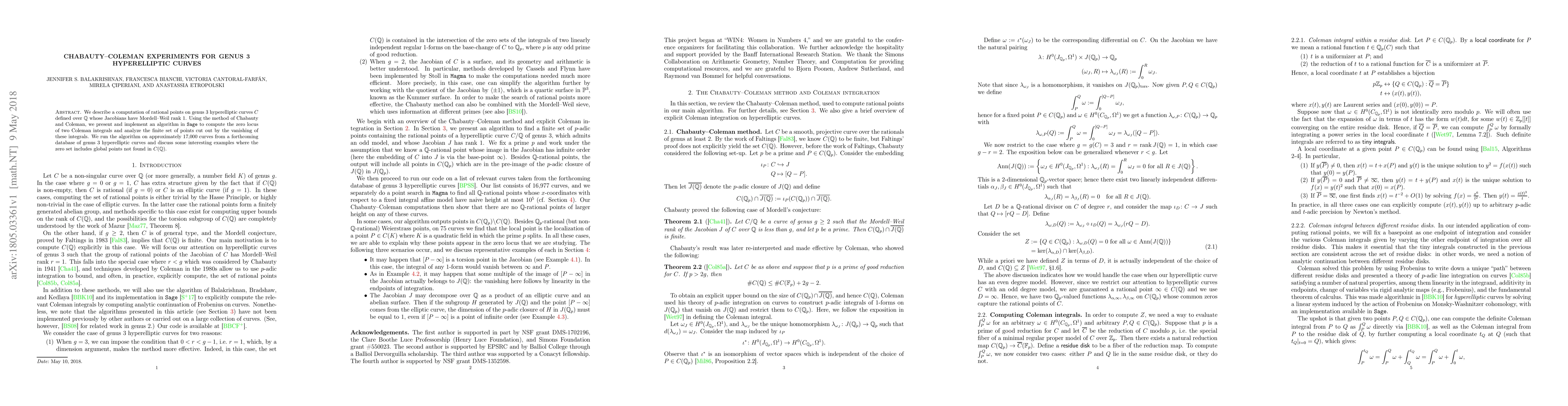 The paper details a computational study of rational points on genus 3 hyperelliptic curves over $\mathbb{Q}$ with Jacobians having Mordell-Weil rank 1, employing Chabauty and Coleman's method to identify a finite set of points using an implemented algorithm in Sage. Some curves reveal global points not previously identified in $C(\mathbb{Q})$.