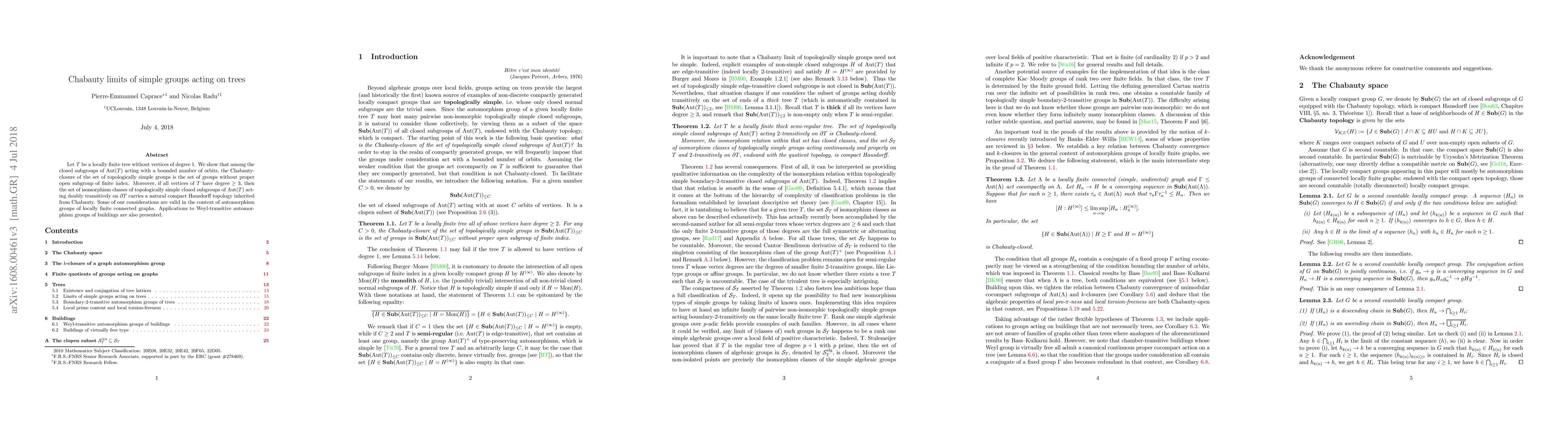 This paper studies the Chabauty limits of simple groups acting on trees, showing that the Chabauty closure of topologically simple groups is equivalent to groups without proper open subgroups of finite index. It further proves that when all tree vertices have degree at least 3, topologically simple closed subgroups acting doubly transitively on the tree boundary form a compact Hausdorff space.