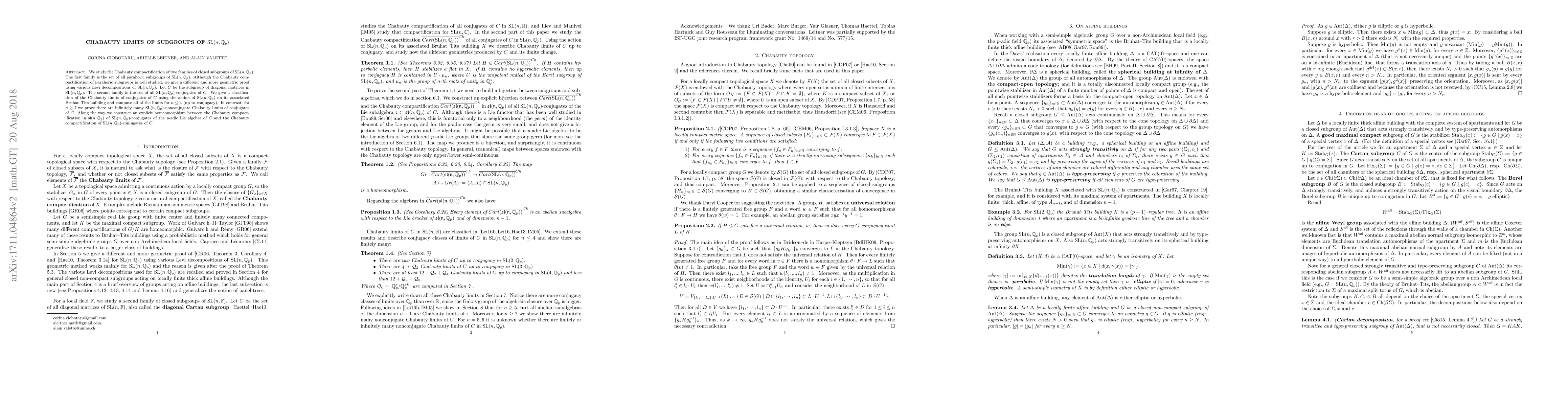 This paper examines the Chabauty compactification for parahoric subgroups and conjugates of a specific diagonal subgroup within $SL(n, \mathbb{Q}_p)$. It provides a geometric proof for parahoric subgroups and classifies Chabauty limits for conjugates, showing infinite nonconjugate limits for $n\geq 7$.