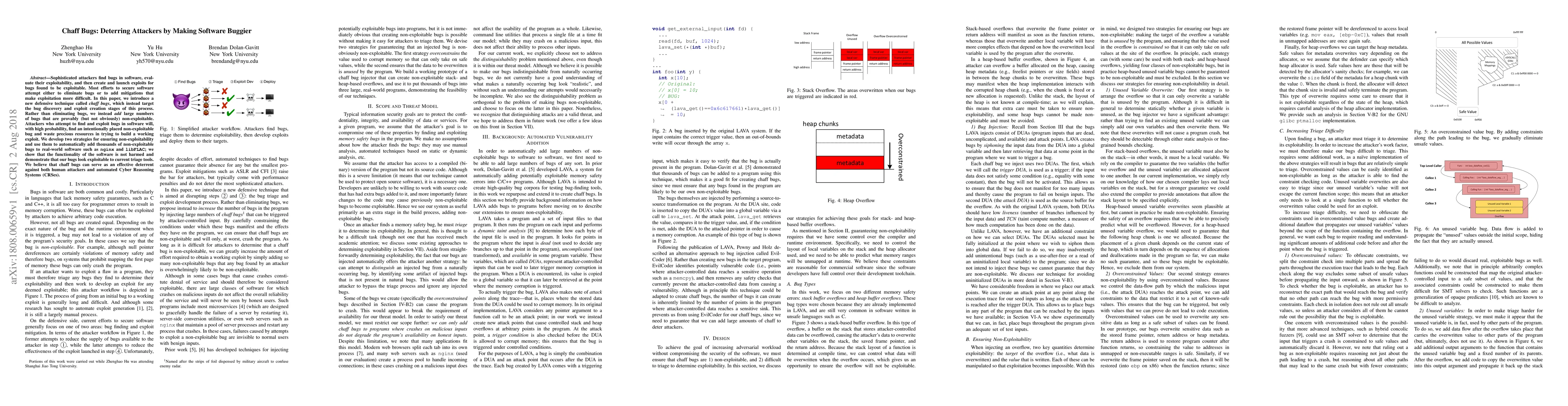 Researchers introduce a new defensive technique called chaff bugs to deter attackers by adding non-exploitable bugs to software, wasting resources on exploit creation, and protecting against human and automated attackers.