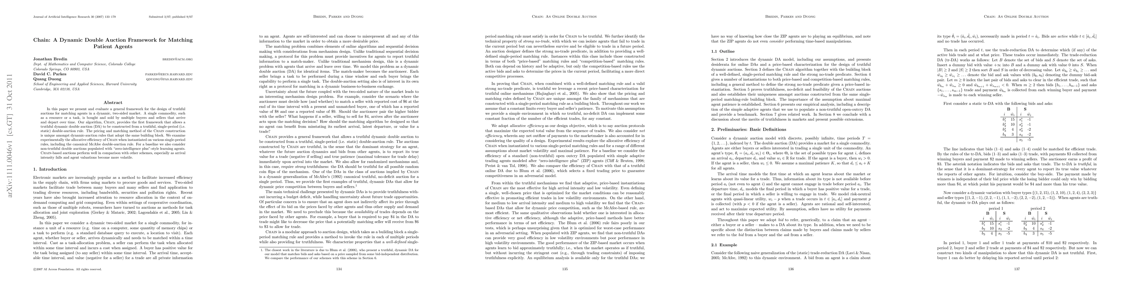 The Chain framework dynamically constructs truthful double auctions for matching agents in a fluctuating two-sided market, outperforming non-truthful alternatives, particularly under lower agent arrival rates and higher valuation volatility. Experimental results highlight Chain's superior allocative efficiency compared to baseline methods.