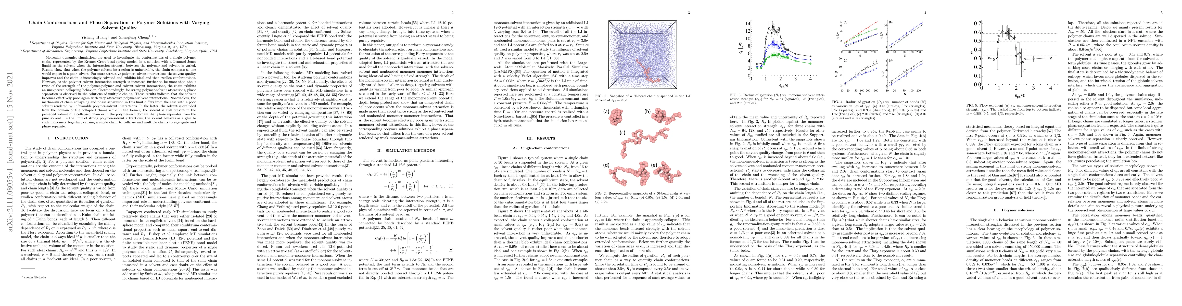 Molecular dynamics simulations are used to investigate the conformations of a single polymer chain, represented by the Kremer-Grest bead-spring model, in a solution with a Lennard-Jones liquid as the solvent when the interaction strength between the polymer and solvent is varied. Results show that when the polymer-solvent interaction is unfavorable, the chain collapses as one would expect in a poor solvent. For more attractive polymer-solvent interactions, the solvent quality improves and the chain is increasingly solvated and exhibits ideal and then swollen conformations. However, as the polymer-solvent interaction strength is increased further to be more than about twice of the strength of the polymer-polymer and solvent-solvent interactions, the chain exhibits an unexpected collapsing behavior. Correspondingly, for strong polymer-solvent attractions, phase separation is observed in the solutions of multiple chains. These results indicate that the solvent becomes effectively poor again with very attractive polymer-solvent interactions. Nonetheless, the mechanism of chain collapsing and phase separation in this limit differs from the case with a poor solvent rendered by unfavorable polymer-solvent interactions. In the latter, the solvent is excluded from the domain of the collapsed chains while in the former, the solvent is still present in the pervaded volume of a collapsed chain or in the polymer-rich domain that phase separates from the pure solvent. In the limit of strong polymer-solvent attractions, the solvent behaves as a glue to stick monomers together, causing a single chain to collapse and multiple chains to aggregate and phase separate.