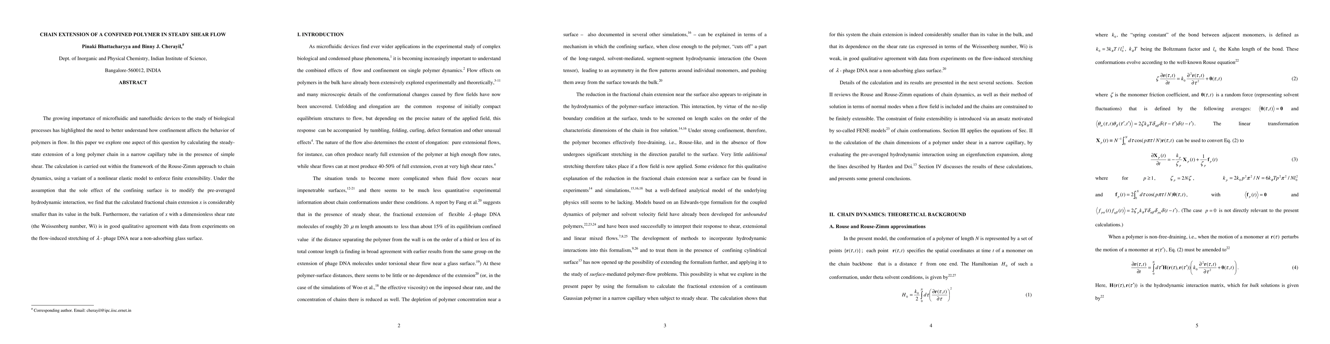 This paper investigates the steady-state extension of polymer chains in confined shear flow using the Rouse-Zimm model, finding that chain extension is significantly reduced compared to bulk conditions. The study aligns theoretical predictions with experimental observations on lambda-phage DNA near a glass surface.