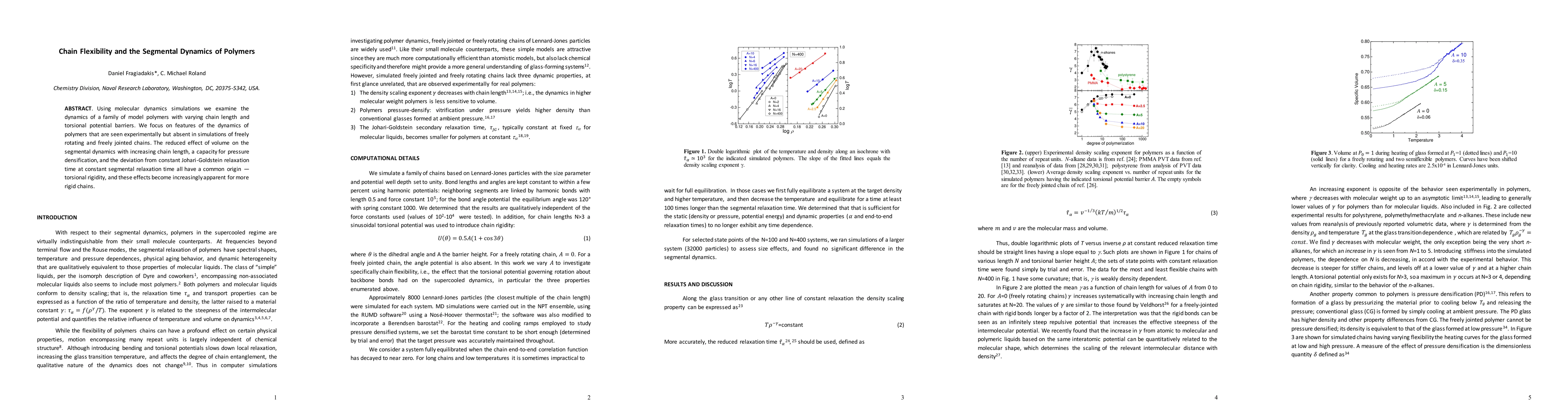 Researchers used molecular dynamics simulations to study polymers with varying chain lengths and torsional potential barriers, finding that torsional rigidity affects segmental dynamics, including reduced volume effects and pressure densification.