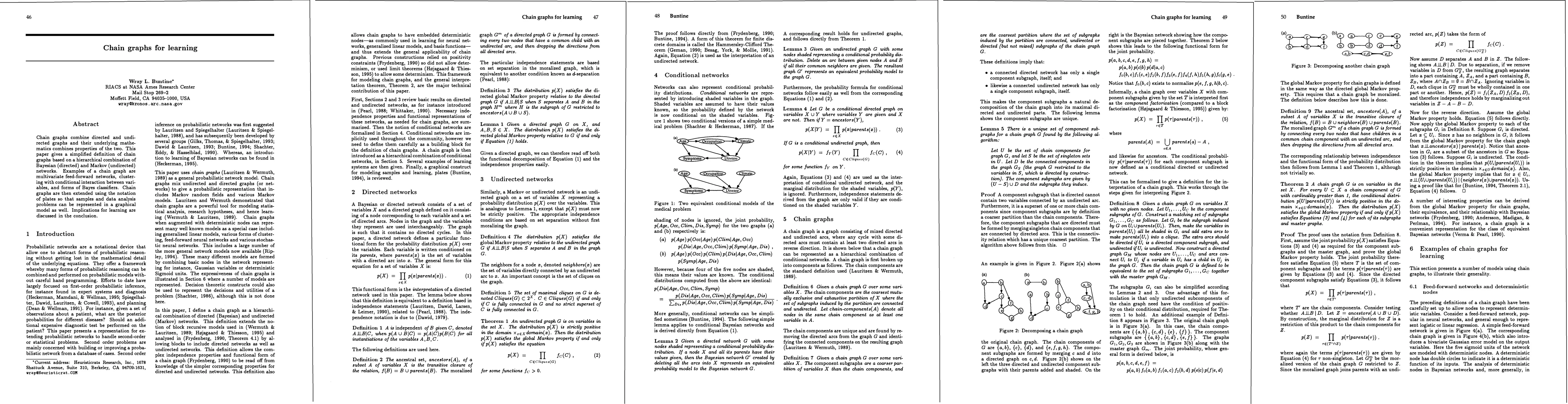 This paper introduces chain graphs, a hybrid of directed and undirected graphs, defined through a combination of Bayesian and Markov networks. It extends chain graphs using plate notation to represent samples and data analysis, with implications for learning discussed.