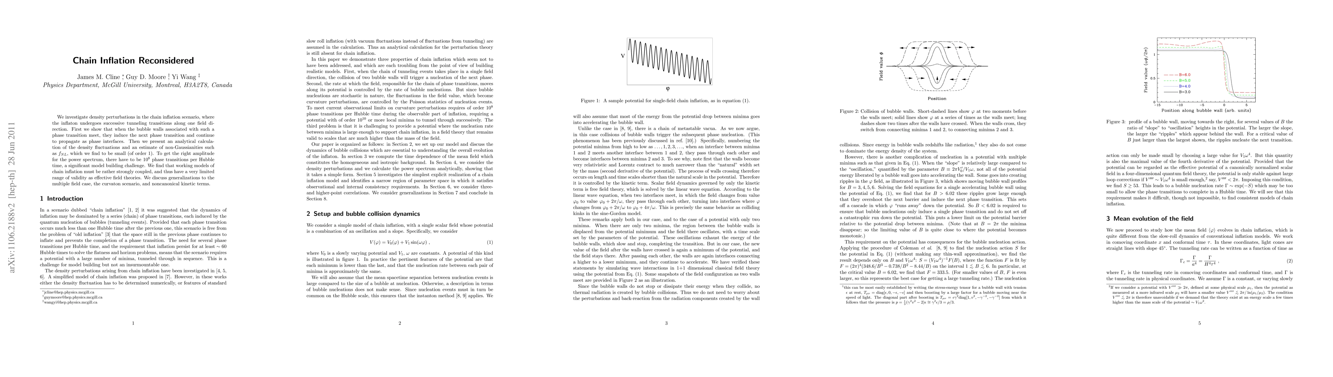 We investigate density perturbations in the chain inflation scenario, where the inflaton undergoes successive tunneling transitions along one field direction. First we show that when the bubble walls associated with such a phase transition meet, they induce the next phase transition and continue to propagate as phase interfaces. Then we present an analytical calculation of the density fluctuations and an estimate of non-Gaussianities such as f_{NL}, which we find to be small (of order 1). To get the right amplitude for the power spectrum, there have to be 10^8 phase transitions per Hubble time, a significant model building challenge. We find that working models of chain inflation must be rather strongly coupled, and thus have a very limited range of validity as effective field theories. We discuss generalizations to the multiple field case, the curvaton scenario, and noncanonical kinetic terms.