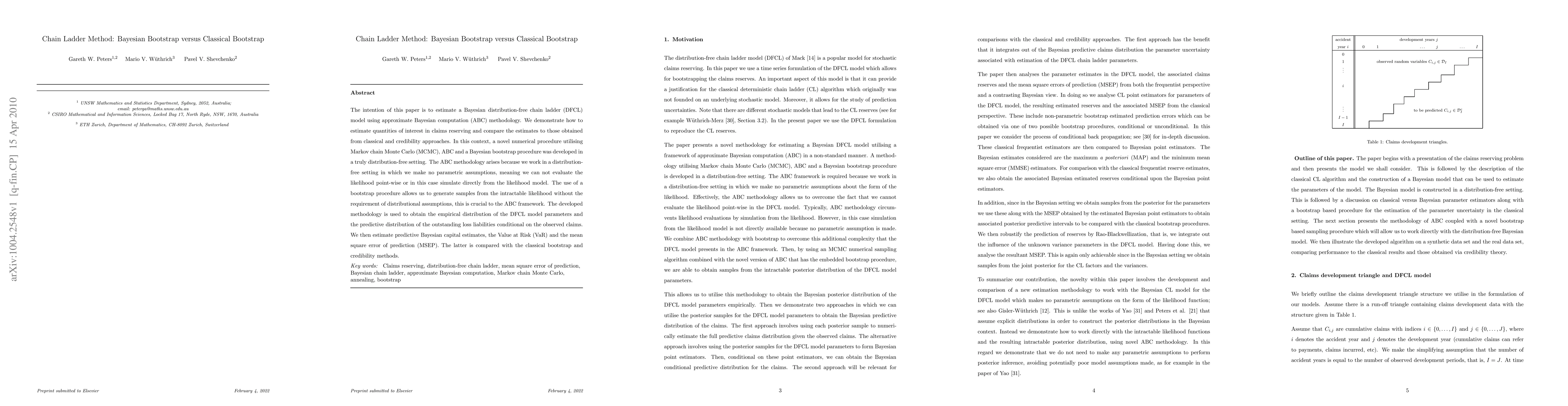 This paper develops a Bayesian distribution-free chain ladder model using approximate Bayesian computation (ABC) and a Bayesian bootstrap procedure. It compares the Bayesian bootstrap estimates to classical bootstrap and credibility methods for claims reserving, focusing on predictive Bayesian capital estimates, Value at Risk (VaR), and mean square error of prediction (MSEP).