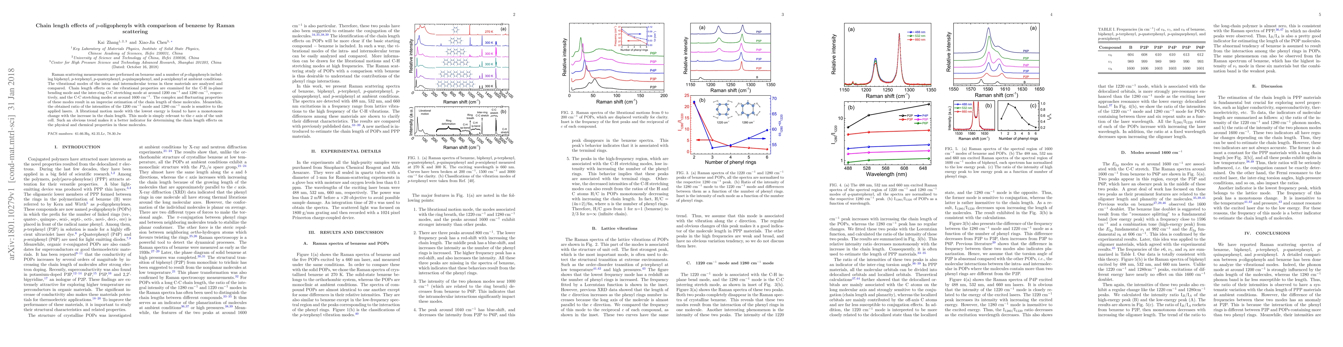 This study uses Raman scattering to analyze vibrational modes in benzene and p-oligophenyls, finding chain length effects on C-H bending and C-C stretching modes. A librational motion mode, sensitive to chain length changes, is identified as a reliable indicator for determining molecular chain length in these compounds.