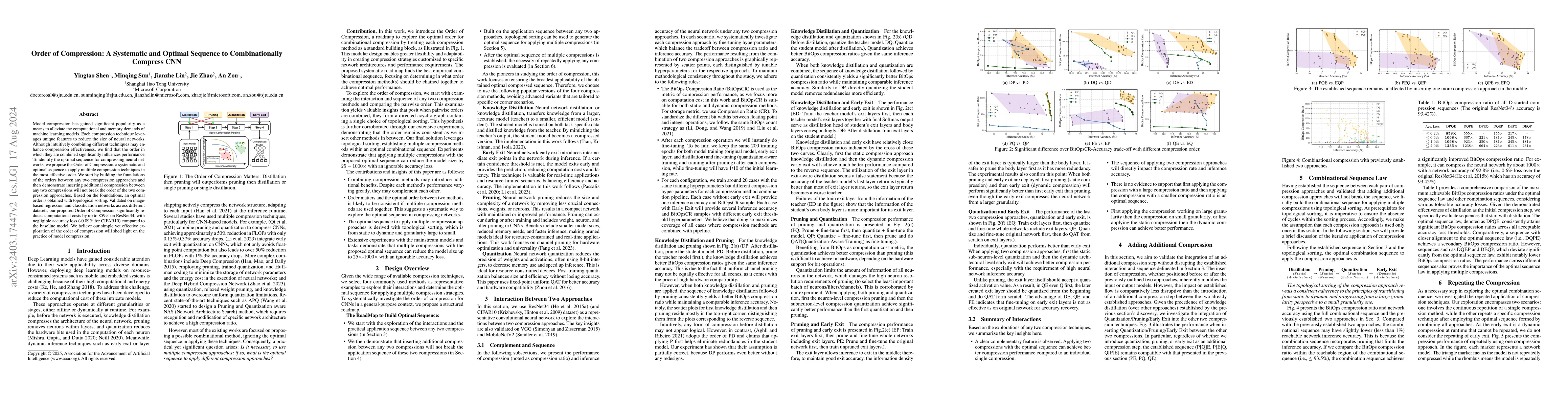 Convolutional neural networks (CNNs) have achieved significant popularity, but their computational and memory intensity poses challenges for resource-constrained computing systems, particularly with the prerequisite of real-time performance. To release this burden, model compression has become an important research focus. Many approaches like quantization, pruning, early exit, and knowledge distillation have demonstrated the effect of reducing redundancy in neural networks. Upon closer examination, it becomes apparent that each approach capitalizes on its unique features to compress the neural network, and they can also exhibit complementary behavior when combined. To explore the interactions and reap the benefits from the complementary features, we propose the Chain of Compression, which works on the combinational sequence to apply these common techniques to compress the neural network. Validated on the image-based regression and classification networks across different data sets, our proposed Chain of Compression can significantly compress the computation cost by 100-1000 times with ignorable accuracy loss compared with the baseline model.