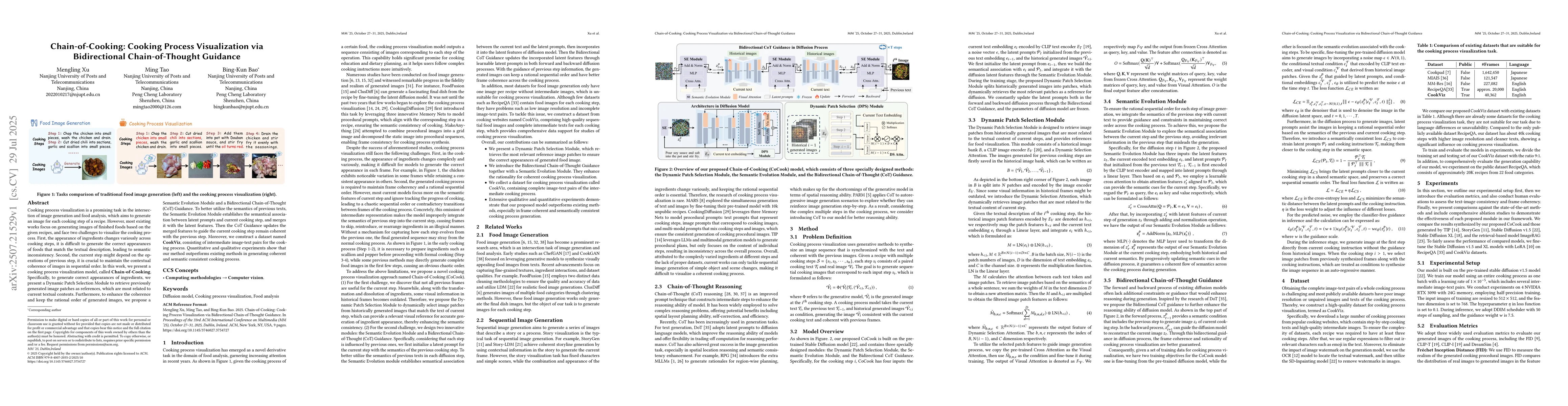 This research is significant as it addresses the rare task of cooking process visualization, which is crucial for food analysis and image generation. The proposed method and dataset broaden the application scenarios of food image generation and facilitate further research in this domain.
