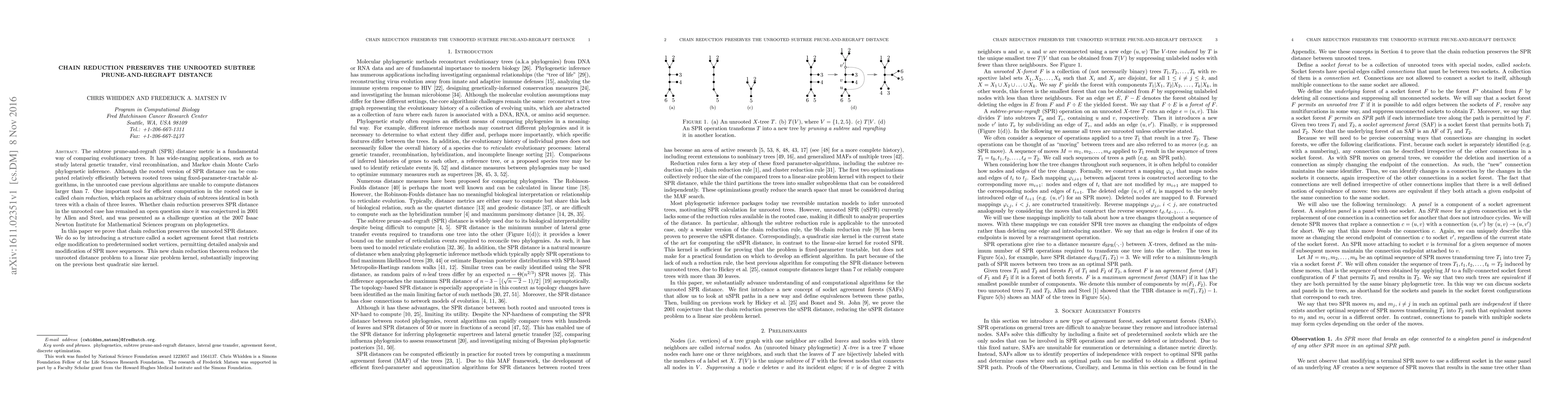 A new theorem proves that chain reduction preserves the unrooted subtree prune-and-regraft distance metric, solving a long-standing challenge in phylogenetics and improving computational efficiency for evolutionary tree analysis.