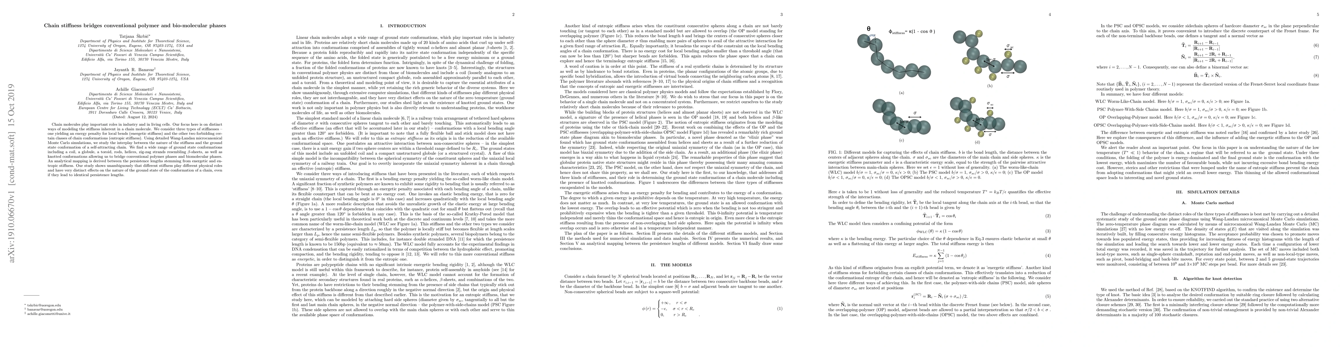 This paper investigates various stiffness models for chain molecules, revealing diverse ground state conformations through Monte Carlo simulations. It bridges conventional polymer and biomolecular phases by demonstrating distinct physical roles of different stiffness types, despite identical persistence lengths.