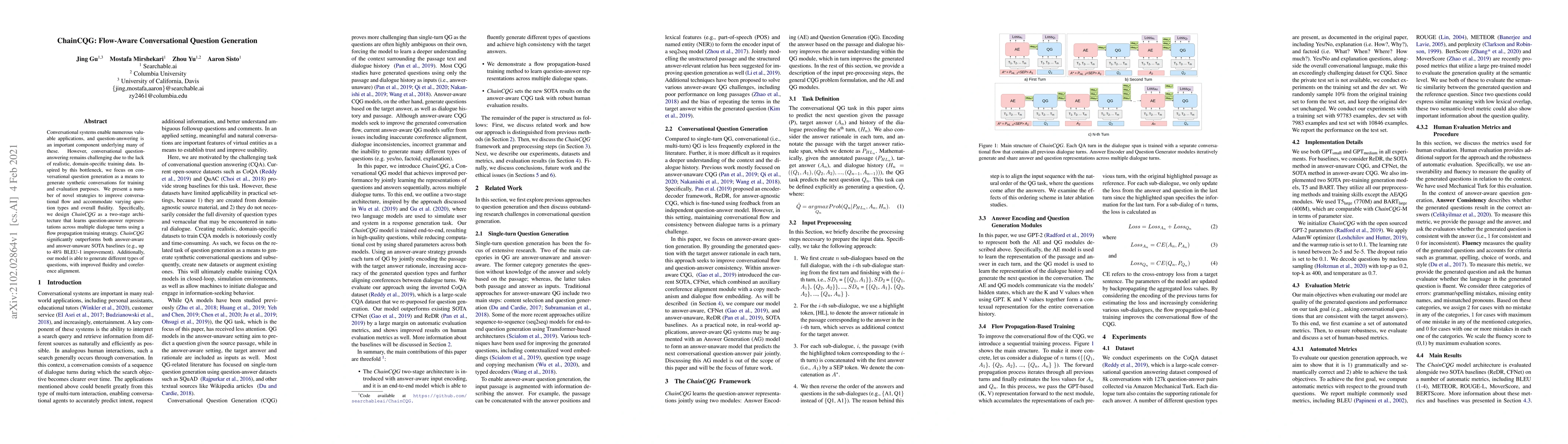 ChainCQG introduces a two-stage architecture for generating conversational questions that enhance synthetic dialogue training. It significantly outperforms existing methods, improving fluid question generation and coreference alignment.