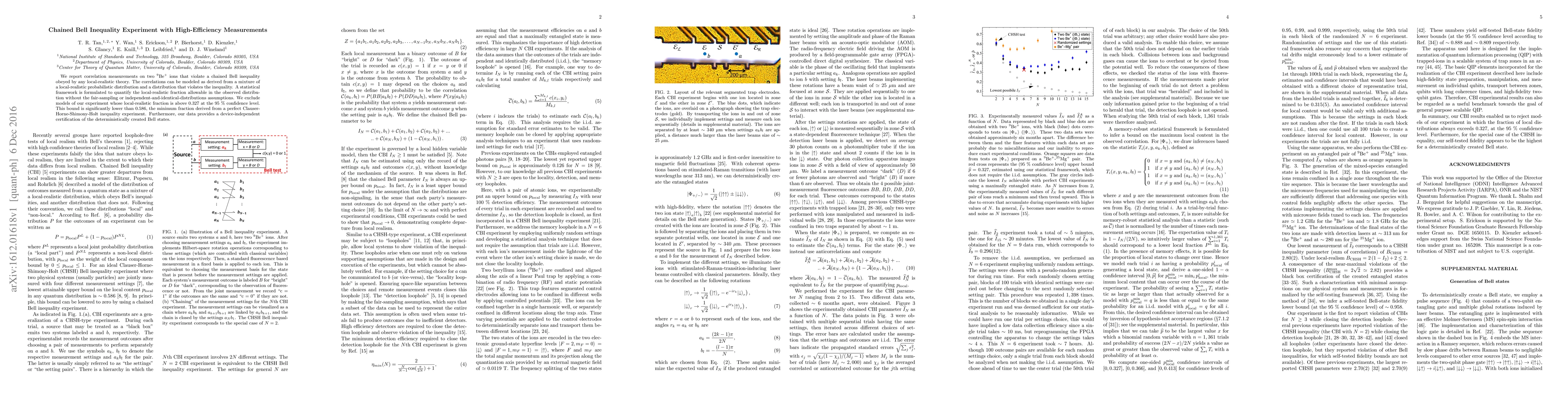 This paper reports an experiment demonstrating violation of a chained Bell inequality using high-efficiency measurements on two $^9$Be$^+$ ions, ruling out local-realistic models with a local-realistic fraction below 0.327 at 95% confidence. The experiment also certifies the deterministic creation of Bell states in a device-independent manner.