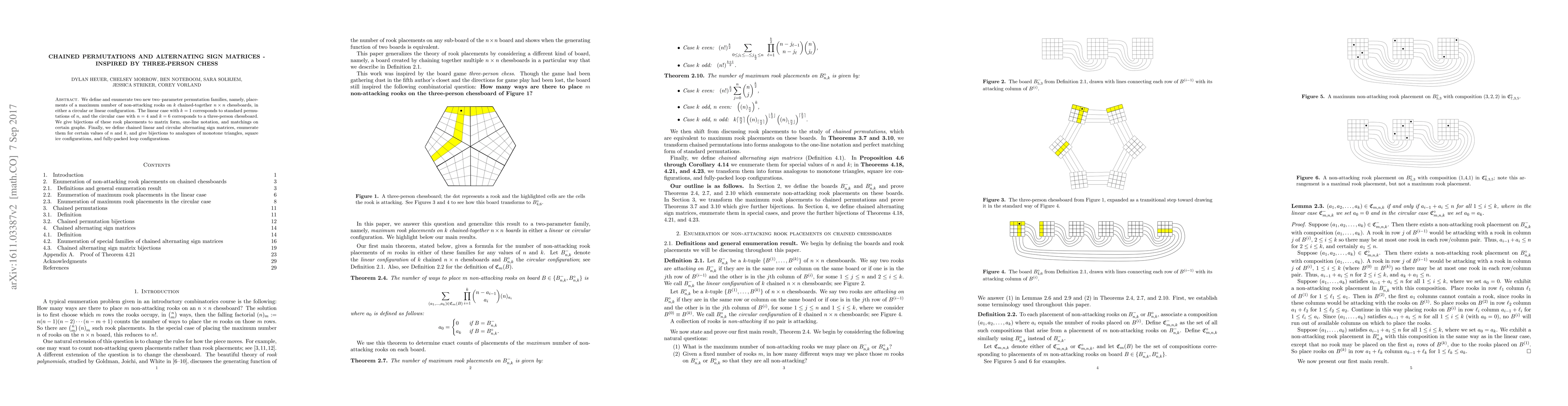 We define and enumerate two new two-parameter permutation families, namely, placements of a maximum number of non-attacking rooks on $k$ chained-together $n\times n$ chessboards, in either a circular or linear configuration. The linear case with $k=1$ corresponds to standard permutations of $n$, and the circular case with $n=4$ and $k=6$ corresponds to a three-person chessboard. We give bijections of these rook placements to matrix form, one-line notation, and matchings on certain graphs. Finally, we define chained linear and circular alternating sign matrices, enumerate them for certain values of $n$ and $k$, and give bijections to analogues of monotone triangles, square ice configurations, and fully-packed loop configurations.