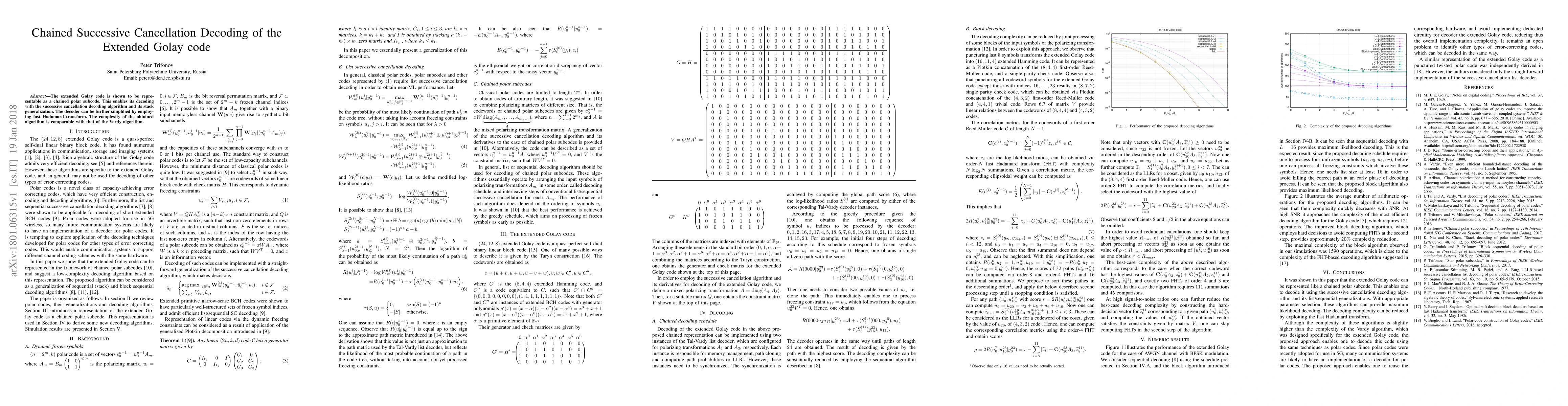 The extended Golay code is shown to be representable as a chained polar subcode. This enables its decoding with the successive cancellation algorithm and its stack generalization. The decoder can be further simplified by employing fast Hadamard transform. The complexity of the obtained algorithm is comparable with that of the Vardy algorithm.