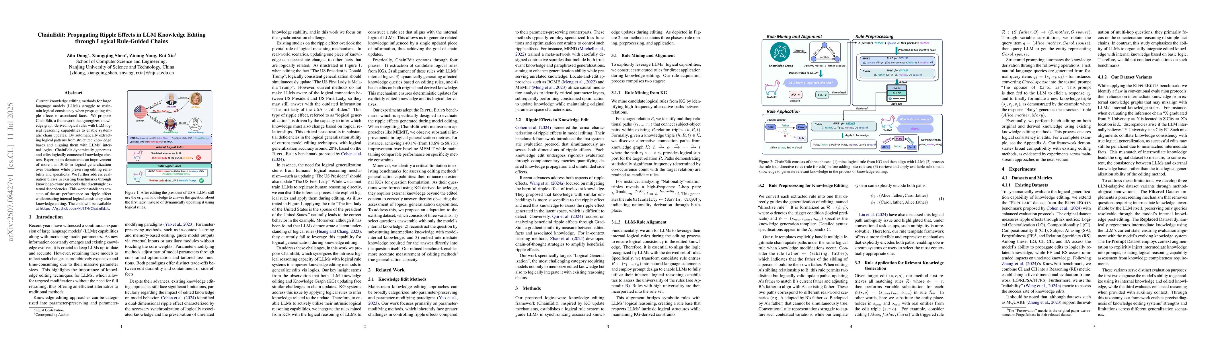 Current knowledge editing methods for large language models (LLMs) struggle to maintain logical consistency when propagating ripple effects to associated facts. We propose ChainEdit, a framework that synergizes knowledge graph-derived logical rules with LLM logical reasoning capabilities to enable systematic chain updates. By automatically extracting logical patterns from structured knowledge bases and aligning them with LLMs' internal logics, ChainEdit dynamically generates and edits logically connected knowledge clusters. Experiments demonstrate an improvement of more than 30% in logical generalization over baselines while preserving editing reliability and specificity. We further address evaluation biases in existing benchmarks through knowledge-aware protocols that disentangle external dependencies. This work establishes new state-of-the-art performance on ripple effect while ensuring internal logical consistency after knowledge editing.