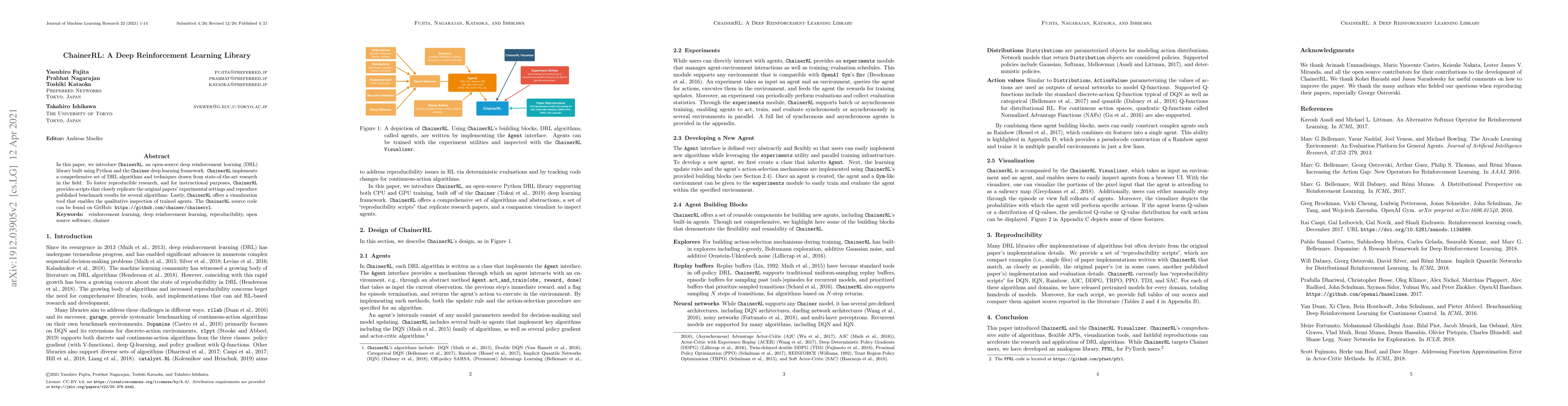 ChainerRL is an open-source deep reinforcement learning library built on Python and the Chainer framework, implementing state-of-the-art algorithms and providing scripts to reproduce benchmark results. It also offers a visualization tool for inspecting trained agents.