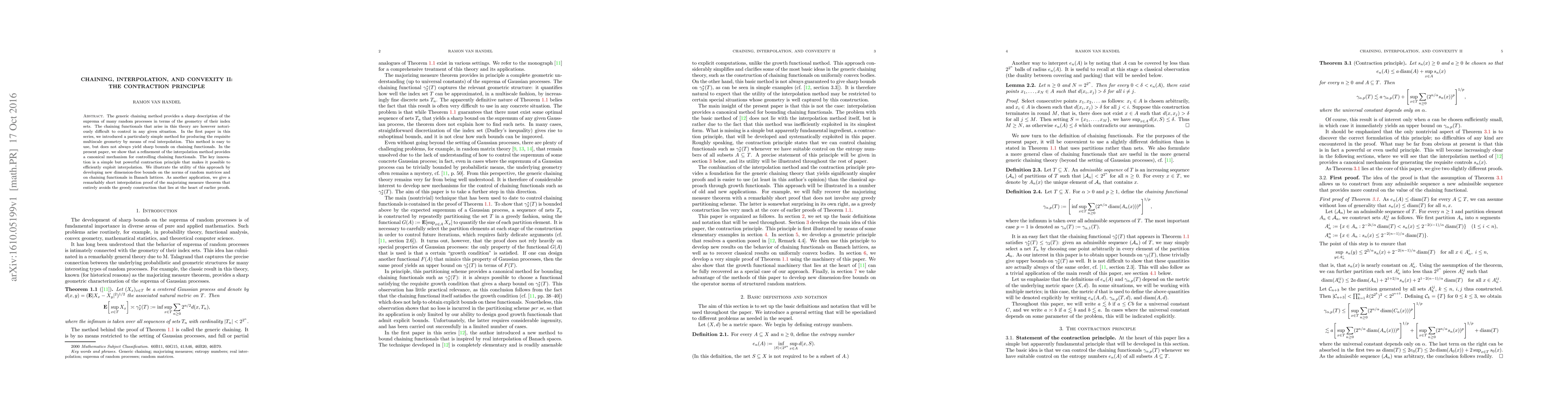This paper refines the interpolation method for controlling chaining functionals using a new contraction principle, providing sharp bounds on norms of random matrices and chaining functionals in Banach lattices, and offering a concise proof of the majorizing measure theorem.