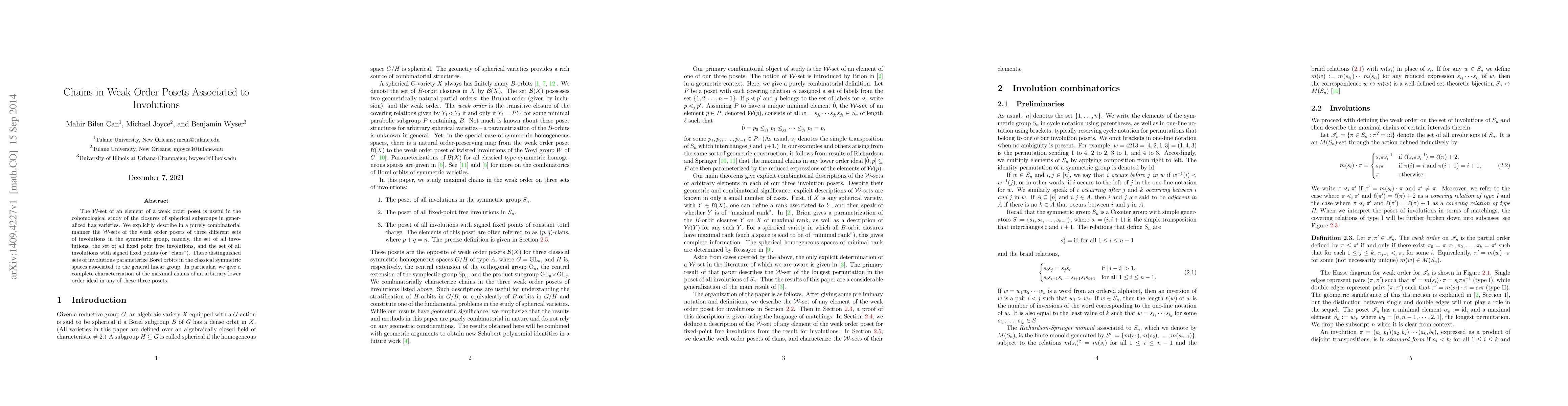 The paper introduces a detailed combinatorial model for describing W-sets associated with weak order posets of different types of involutions, providing a comprehensive characterization of maximal chains in lower order ideals.