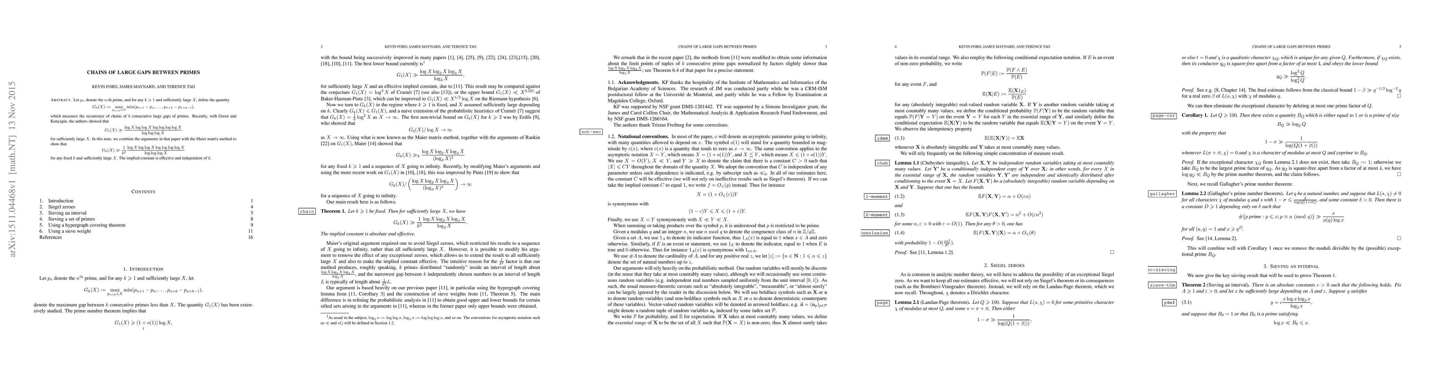 This paper improves upon a previous bound for chains of large gaps between primes, showing that for any fixed k, the number of such chains grows like 1/k^2 times the logarithm of X.