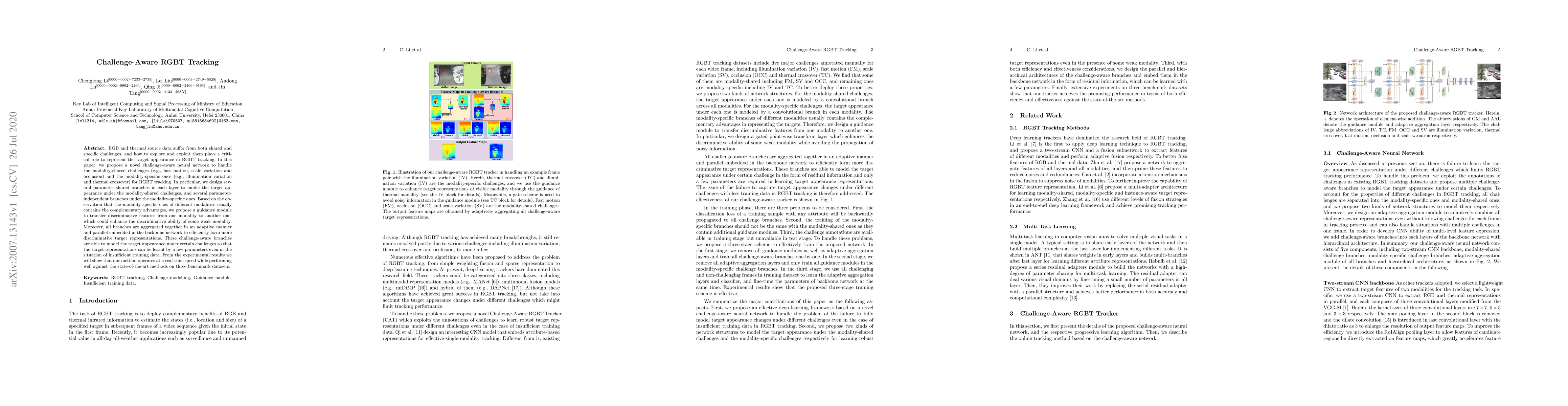 This paper proposes a challenge-aware neural network for RGBT tracking that can handle shared challenges like motion and scale variation, as well as modality-specific ones like illumination and thermal crossover, with real-time performance on benchmark datasets.