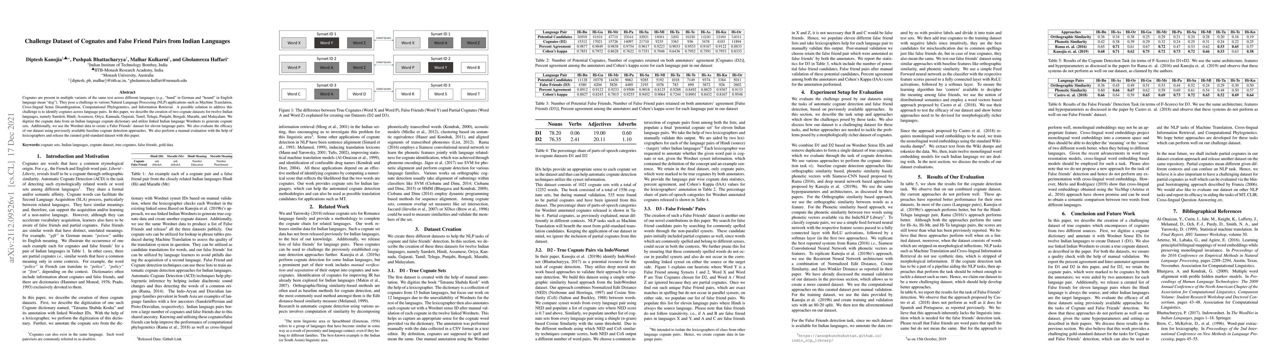 Cognates are present in multiple variants of the same text across different languages (e.g., "hund" in German and "hound" in English language mean "dog"). They pose a challenge to various Natural Language Processing (NLP) applications such as Machine Translation, Cross-lingual Sense Disambiguation, Computational Phylogenetics, and Information Retrieval. A possible solution to address this challenge is to identify cognates across language pairs. In this paper, we describe the creation of two cognate datasets for twelve Indian languages, namely Sanskrit, Hindi, Assamese, Oriya, Kannada, Gujarati, Tamil, Telugu, Punjabi, Bengali, Marathi, and Malayalam. We digitize the cognate data from an Indian language cognate dictionary and utilize linked Indian language Wordnets to generate cognate sets. Additionally, we use the Wordnet data to create a False Friends' dataset for eleven language pairs. We also evaluate the efficacy of our dataset using previously available baseline cognate detection approaches. We also perform a manual evaluation with the help of lexicographers and release the curated gold-standard dataset with this paper.