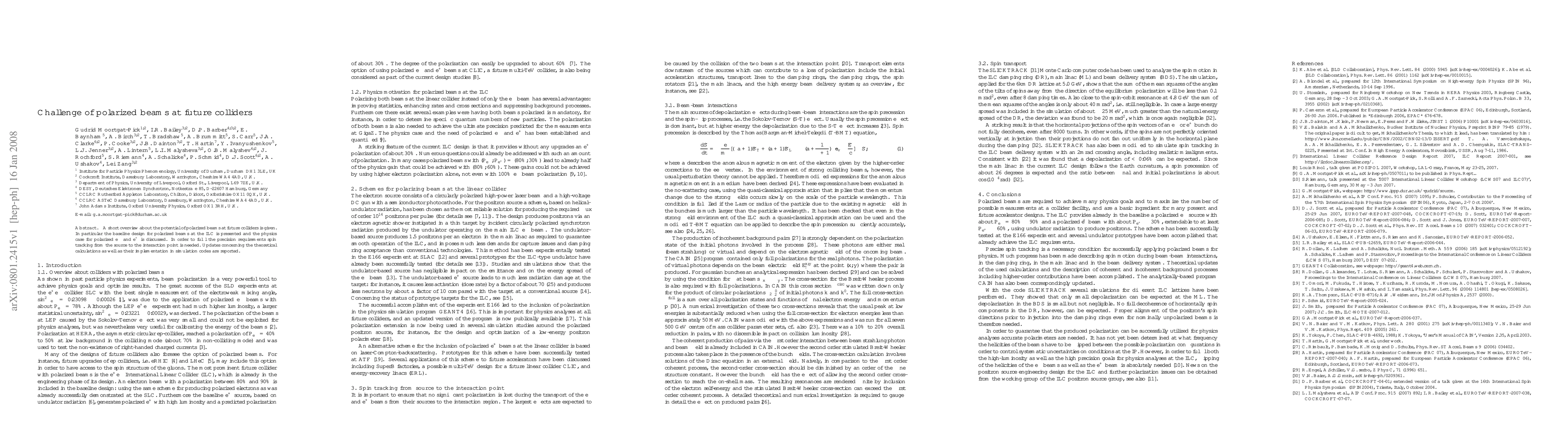 This paper discusses the potential benefits of polarized beams at future colliders, focusing on the International Linear Collider (ILC) design. It emphasizes the need for precise spin tracking and updates on theoretical calculations and their implementation in simulation codes to meet these requirements.