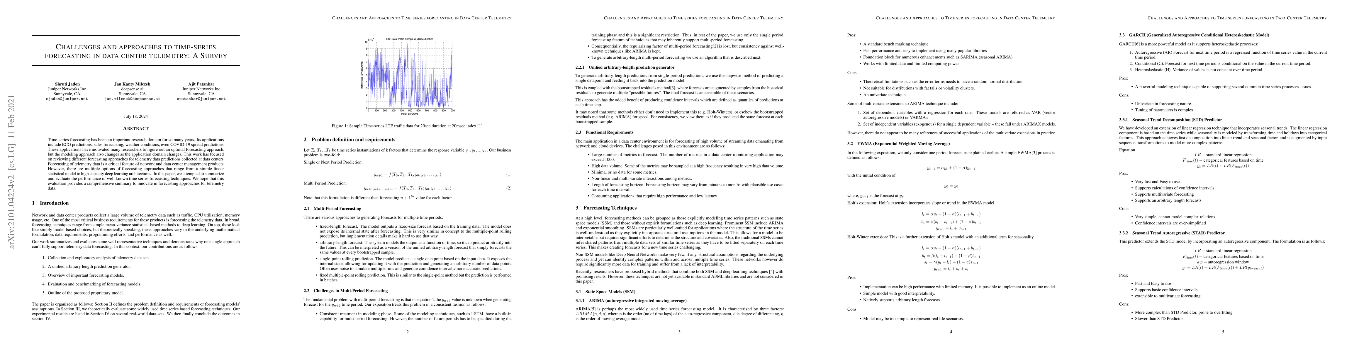 This paper surveys various time-series forecasting methods for data center telemetry data, comparing linear statistical models to deep learning architectures to identify optimal approaches for telemetry predictions in network and data center management. The evaluation aims to guide future innovations in forecasting techniques.
