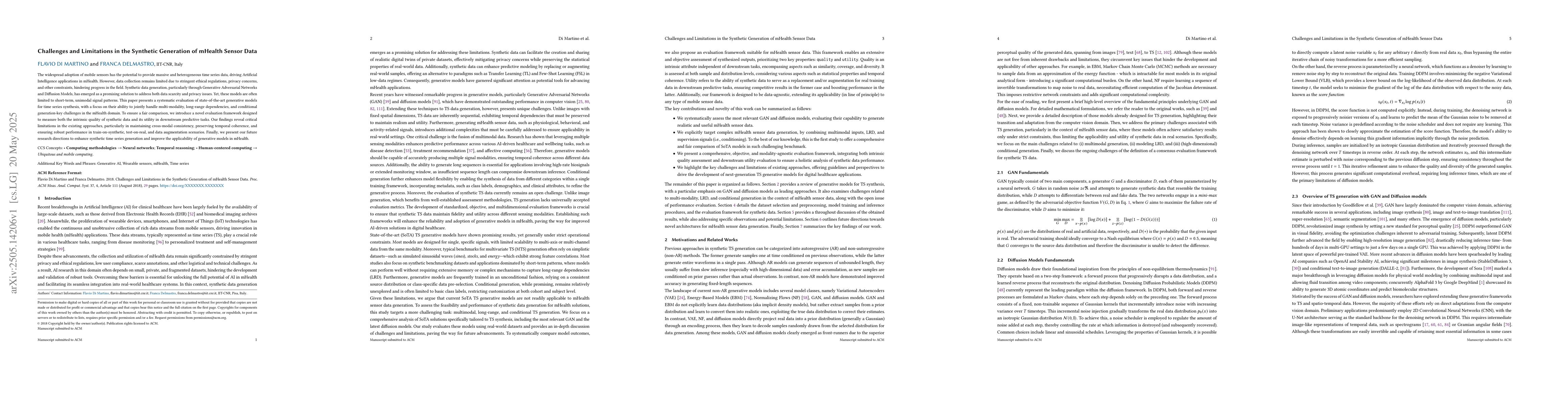 The paper presents a systematic evaluation of state-of-the-art generative models for time series synthesis, focusing on multi-modality, long-range dependencies, and conditional generation challenges in mHealth. A novel evaluation framework is introduced to measure the intrinsic quality of synthetic data and its utility in downstream predictive tasks.