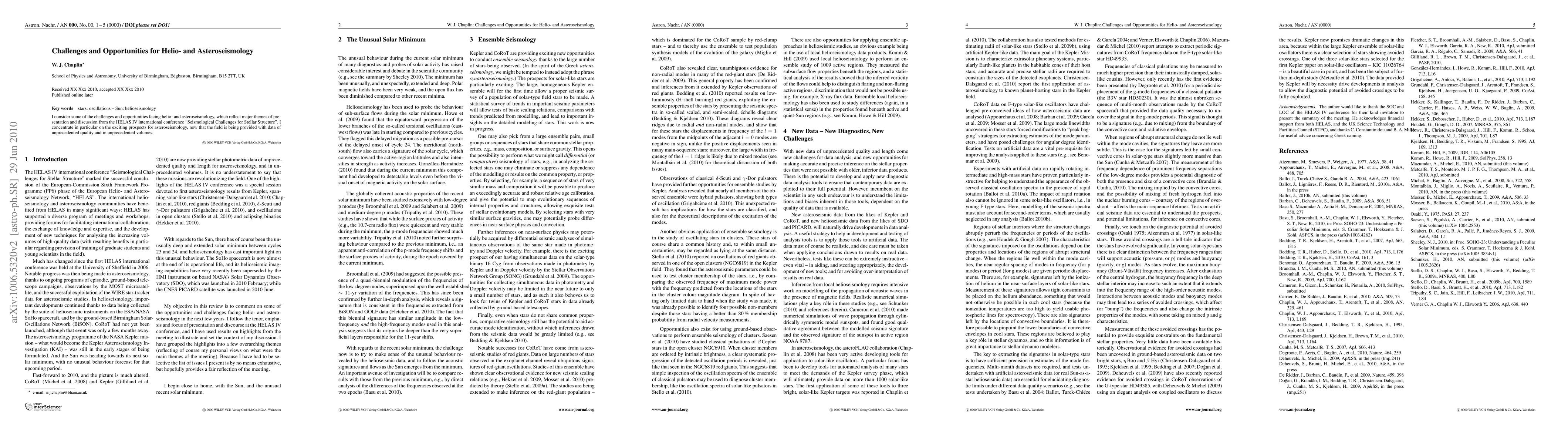 This paper discusses the challenges and opportunities in helio- and asteroseismology, emphasizing the significant advancements in asteroseismology due to high-quality, large-volume data, as highlighted in the HELAS IV conference.