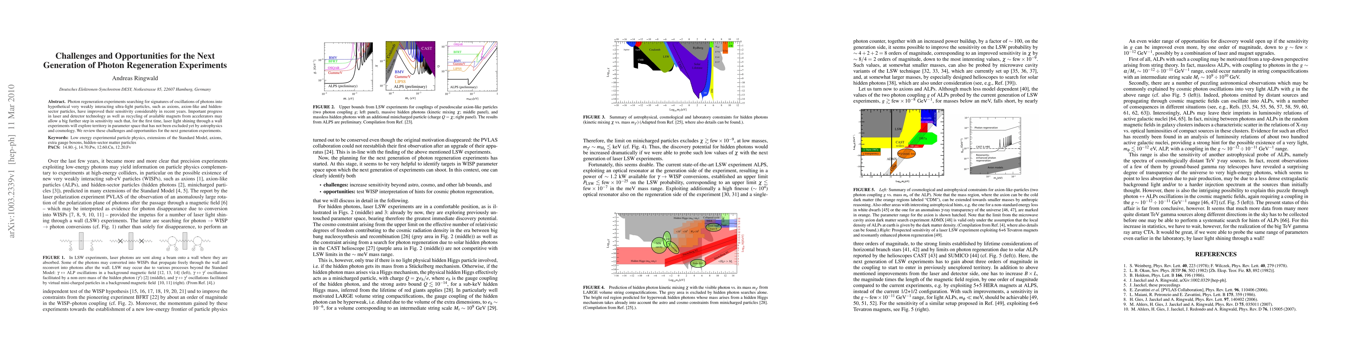 Photon regeneration experiments searching for signatures of oscillations of photons into hypothetical very weakly interacting ultra-light particles, such as axions, axion-like and hidden-sector particles, have improved their sensitivity considerably in recent years. Important progress in laser and detector technology as well as recycling of available magnets from accelerators may allow a big further step in sensitivity such that, for the first time, laser light shining through a wall experiments will explore territory in parameter space that has not been excluded yet by astrophysics and cosmology. We review these challenges and opportunities for the next generation experiments.