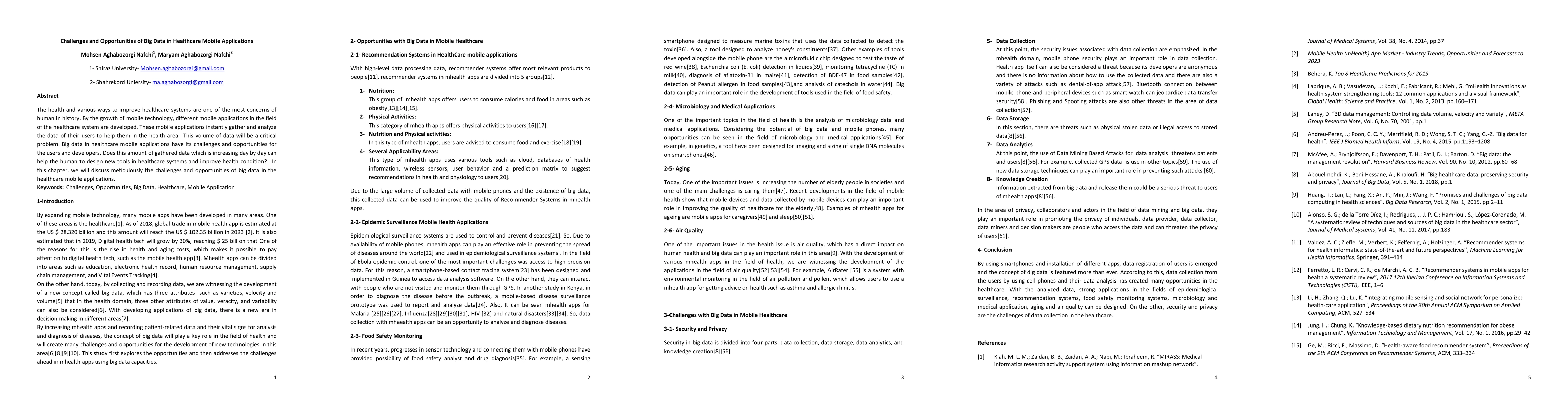 The health and various ways to improve healthcare systems are one of the most concerns of human in history. By the growth of mobile technology, different mobile applications in the field of the healthcare system are developed. These mobile applications instantly gather and analyze the data of their users to help them in the health area. This volume of data will be a critical problem. Big data in healthcare mobile applications have its challenges and opportunities for the users and developers. Does this amount of gathered data which is increasing day by day can help the human to design new tools in healthcare systems and improve health condition? In this chapter, we will discuss meticulously the challenges and opportunities of big data in the healthcare mobile applications.