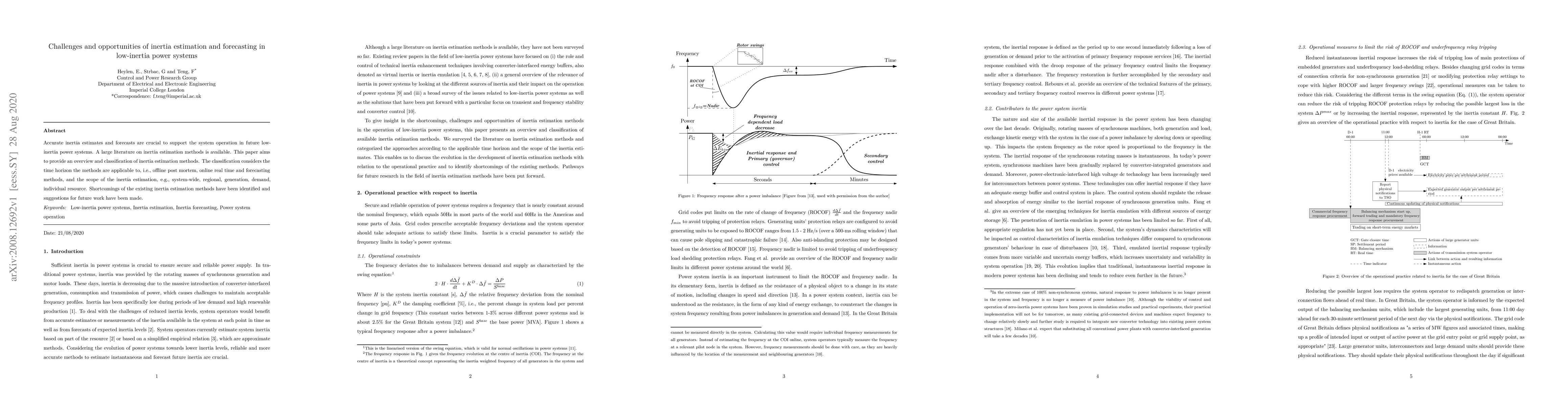 This paper reviews and categorizes inertia estimation methods based on their time horizon and scope, highlighting existing shortcomings and proposing directions for future research to better support system operation in low-inertia power systems. Future work suggestions aim to improve accuracy and applicability across various estimation needs.