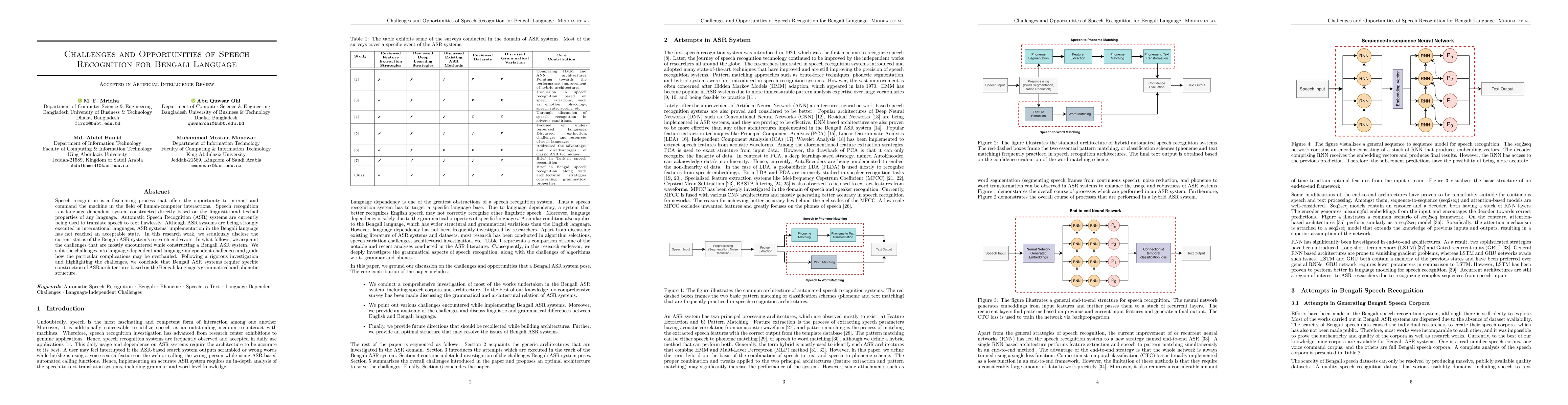 This paper examines the current state of Bengali Automatic Speech Recognition (ASR) systems, identifying both language-dependent and independent challenges in their development. It concludes that tailored ASR architectures are necessary to address the unique grammatical and phonetic properties of the Bengali language.