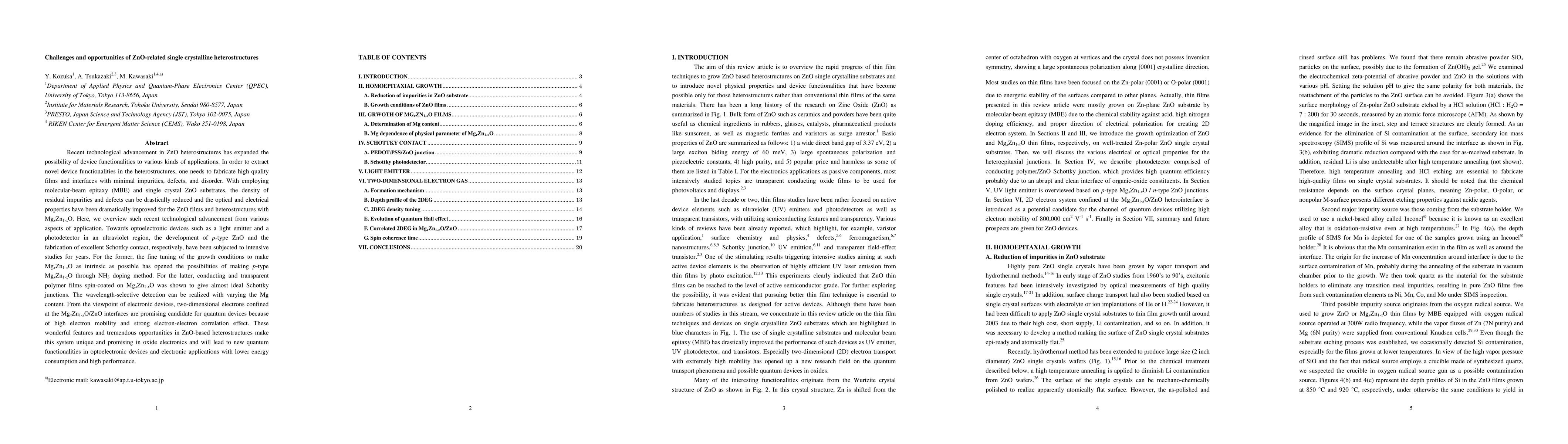 This paper discusses the technological advancements in ZnO heterostructures, emphasizing the fabrication of high-quality, impurity-free films using MBE and single crystal substrates. It highlights the potential for optoelectronic devices, including light emitters and photodetectors, and the promise of quantum devices due to high electron mobility and strong electron-electron correlation effects in ZnO-based heterostructures.