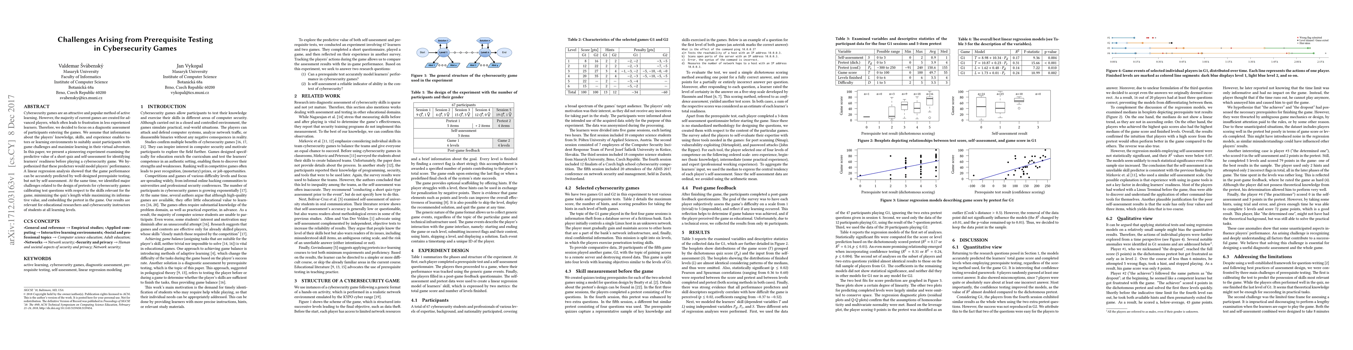 Cybersecurity game creators can accurately predict player performance with well-designed prerequisite testing, but self-assessment is less effective. This finding helps educators design more effective learning experiences for students of all skill levels.