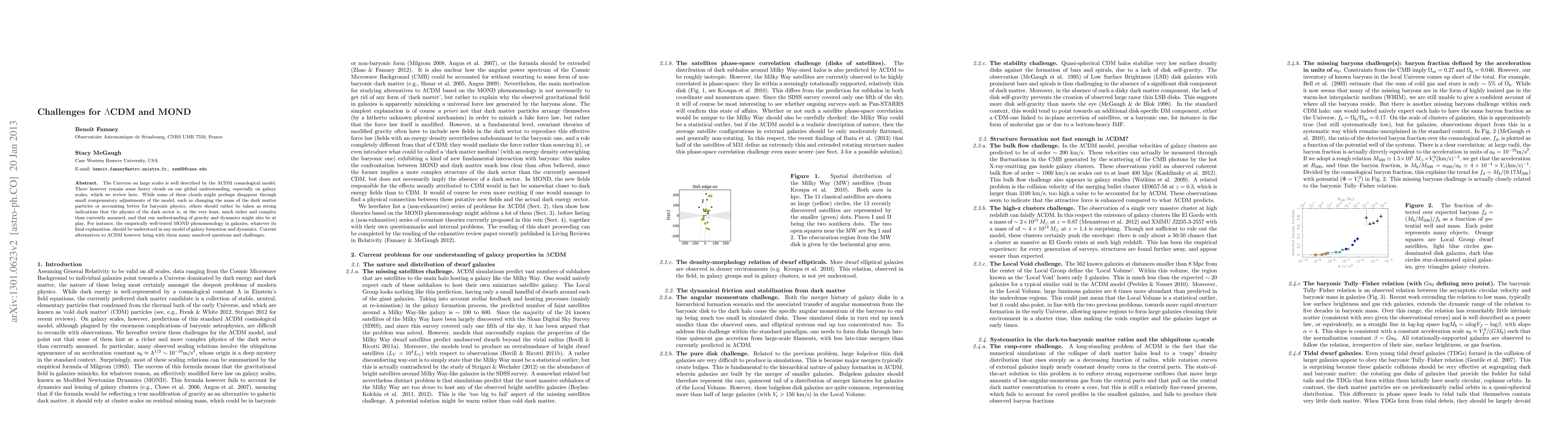 This paper reviews challenges to the Lambda-CDM cosmological model, particularly on galaxy scales, suggesting that some discrepancies may indicate a more complex dark sector and potential issues with our understanding of gravity, while also discussing the empirical success of MOND and the unresolved issues with alternative models.