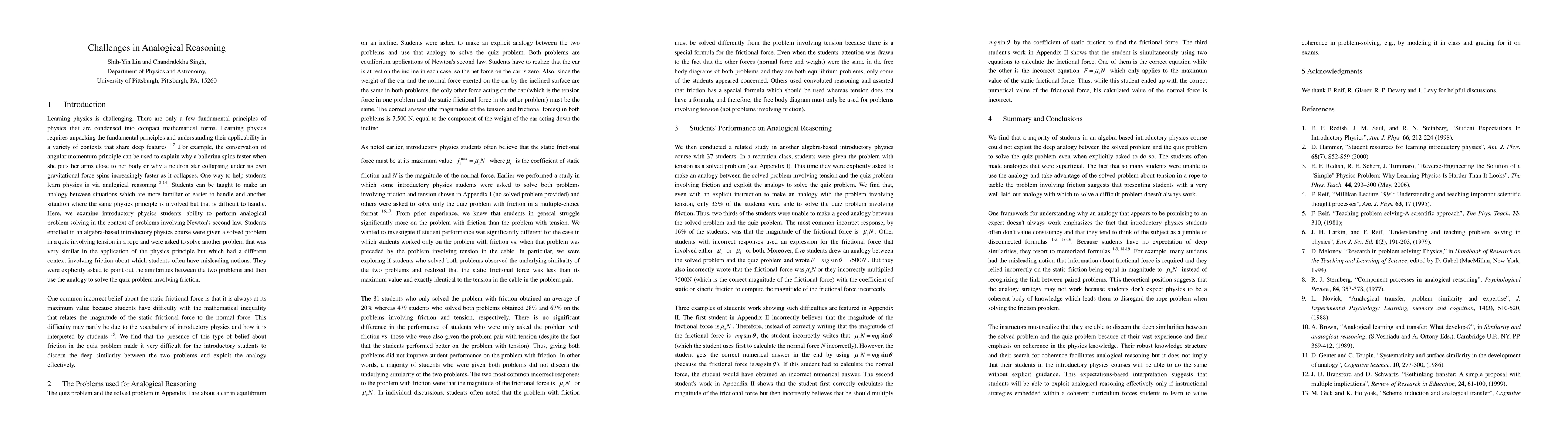 Introductory physics students struggle with applying analogies to solve problems involving Newton's second law, highlighting a common challenge in analogical reasoning.
