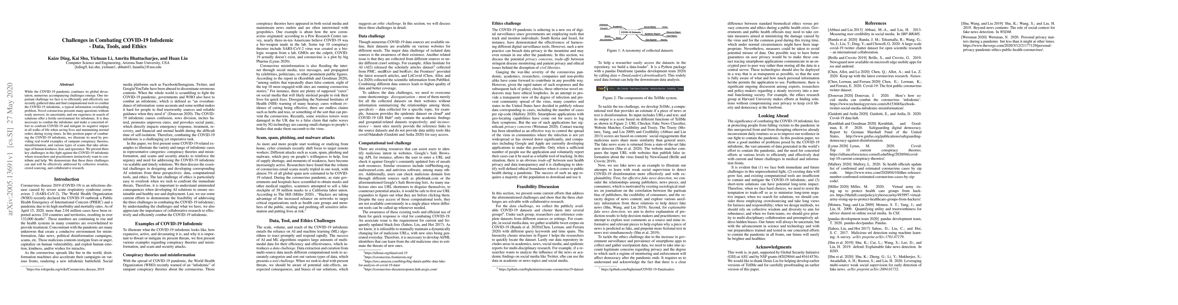 This paper discusses the critical challenge of combating the COVID-19 infodemic through data utilization, tool development, and ethical considerations. It highlights the necessity of addressing misinformation and conspiracy theories while emphasizing the potential of collective efforts and collaborative research to mitigate the infodemic's negative impacts.
