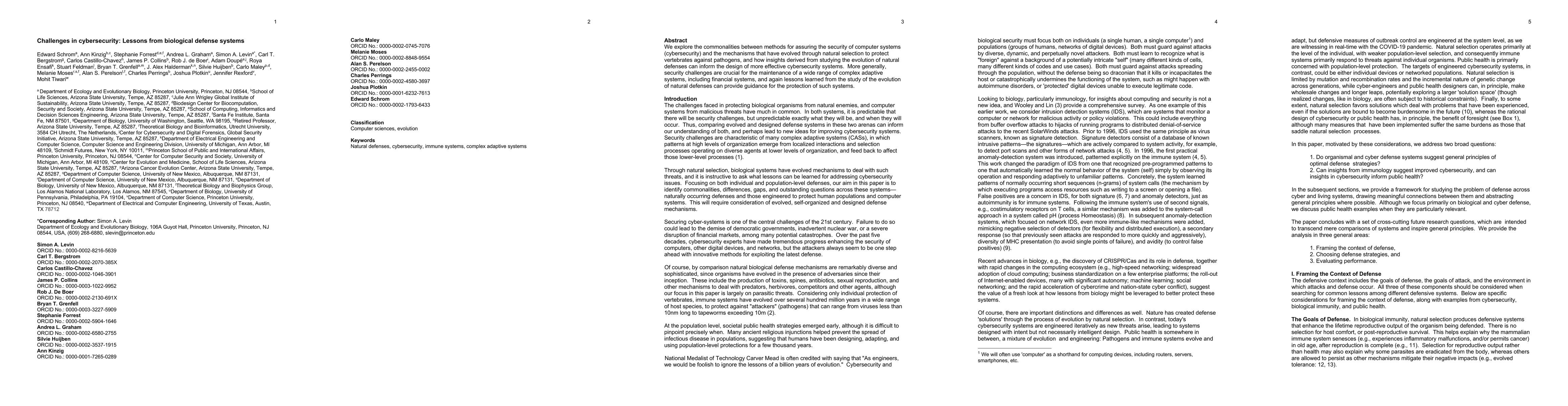 This paper explores connections between biological defense systems and cybersecurity, finding that insights from studying natural defenses can inform more effective security measures for complex adaptive systems like computer networks and financial systems.