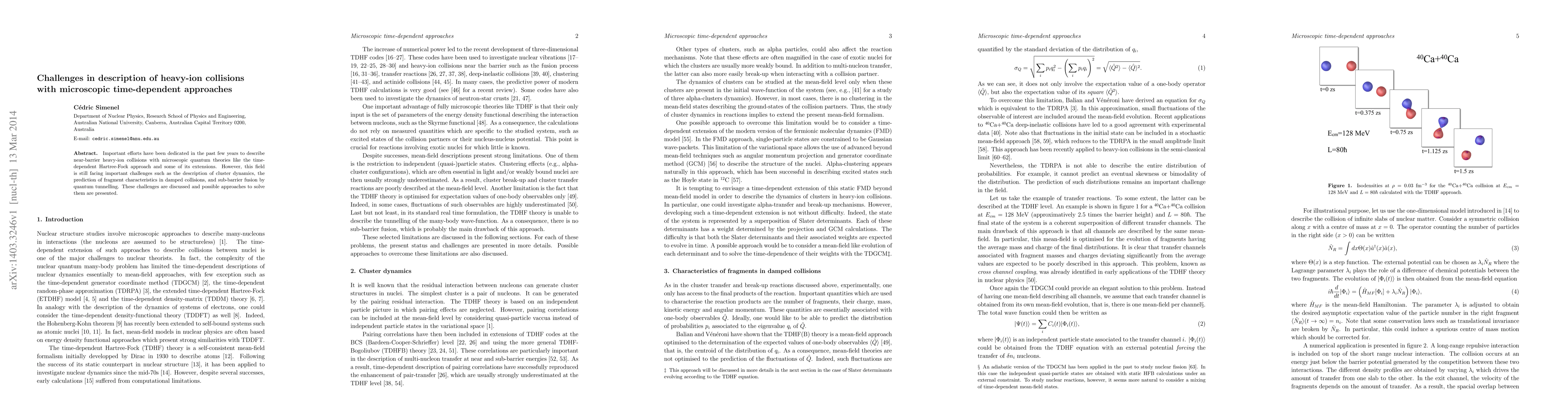 This paper discusses the difficulties in using microscopic quantum theories to describe heavy-ion collisions near the barrier, focusing on cluster dynamics, fragment characteristics, and sub-barrier fusion. It proposes potential solutions to these challenges.