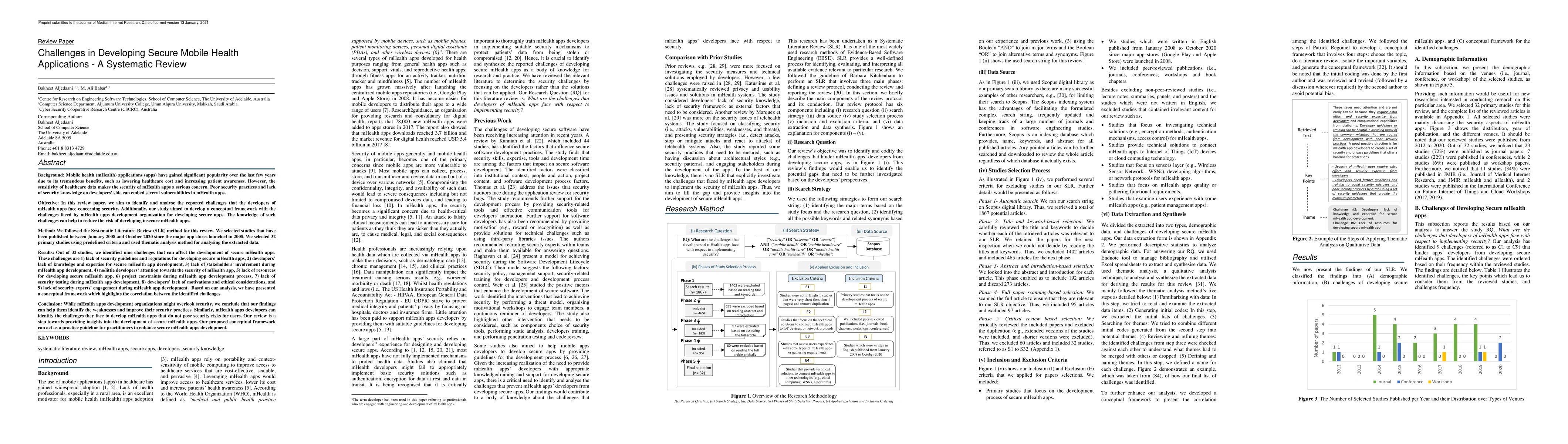 This paper systematically reviews challenges in developing secure mobile health (mHealth) applications, identifying nine key issues such as inadequate security guidelines and developer expertise. The study proposes a conceptual framework to highlight the interrelations among these challenges, offering insights to improve security practices and guide developers in creating secure mHealth apps.