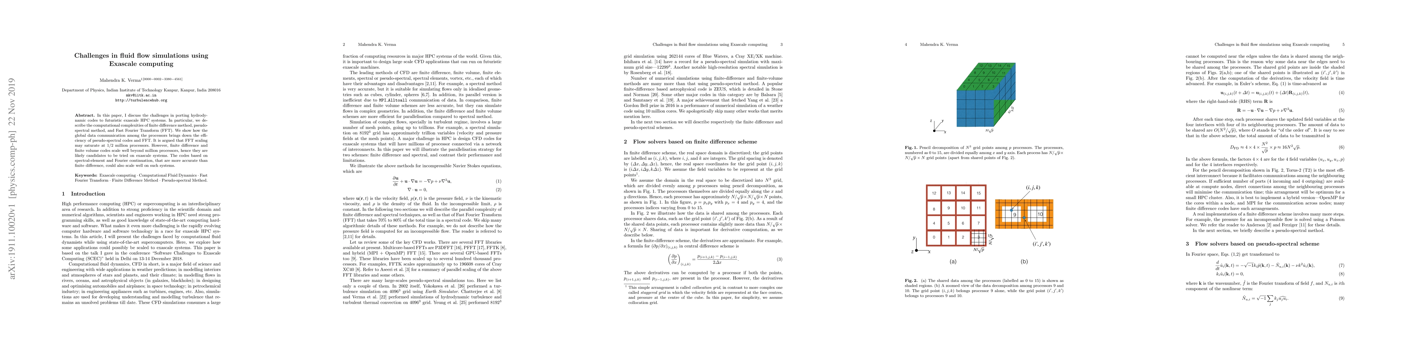 In this paper, I discuss the challenges in porting hydrodynamic codes to futuristic exascale HPC systems. In particular, we describe the computational complexities of finite difference method, pseudo-spectral method, and Fast Fourier Transform (FFT). We show how global data communication among the processors brings down the efficiency of pseudo-spectral codes and FFT. It is argued that FFT scaling may saturate at 1/2 million processors. However, finite difference and finite volume codes scale well beyond million processors, hence they are likely candidates to be tried on exascale systems. The codes based on spectral-element and Fourier continuation, that are more accurate than finite difference, could also scale well on such systems.