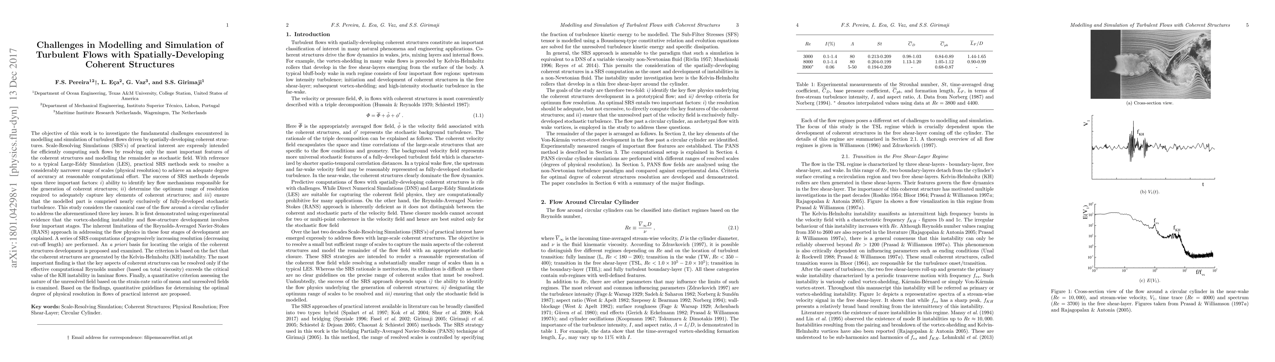 The objective of this work is to investigate the challenges encountered in Scale-Resolving Simulations (SRS's) of turbulent wake flows driven by spatially-developing coherent structures. SRS's of practical interest are expressly intended for efficiently computing such flows by resolving only the most important features of the coherent structures and modelling the remainder as stochastic field. The success of SRS methods depends upon three important factors: i) ability to identify key flow mechanisms responsible for the generation of coherent structures; ii) determine the optimum range of resolution required to adequately capture key elements of coherent structures; and iii) ensure that the modelled part is comprised nearly exclusively of fully-developed stochastic turbulence. This study considers the canonical case of the flow around a circular cylinder to address these three key issues. It is first demonstrated using experimental evidence that the vortex-shedding instability and flow-structure development involves four important stages. A series of SRS computations of progressively increasing resolution are performed. An a priori basis for locating the origin of the coherent structures development is proposed and examined. The criterion is based on the fact that the coherent structures are generated by the Kelvin-Helmholtz (KH) instability. The most important finding is that the key aspects of coherent structures can be resolved only if the effective computational Reynolds number exceeds the critical value of the KH instability in laminar flows. Finally, a quantitative criterion assessing the nature of the unresolved field based on the strain-rate ratio of mean and unresolved fields is examined. The two proposed conditions and underlying rationale offer a quantitative basis for develop "good practice" guidelines for SRS of complex turbulent wake flows with coherent structures.